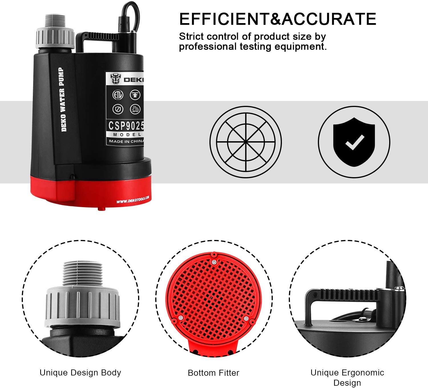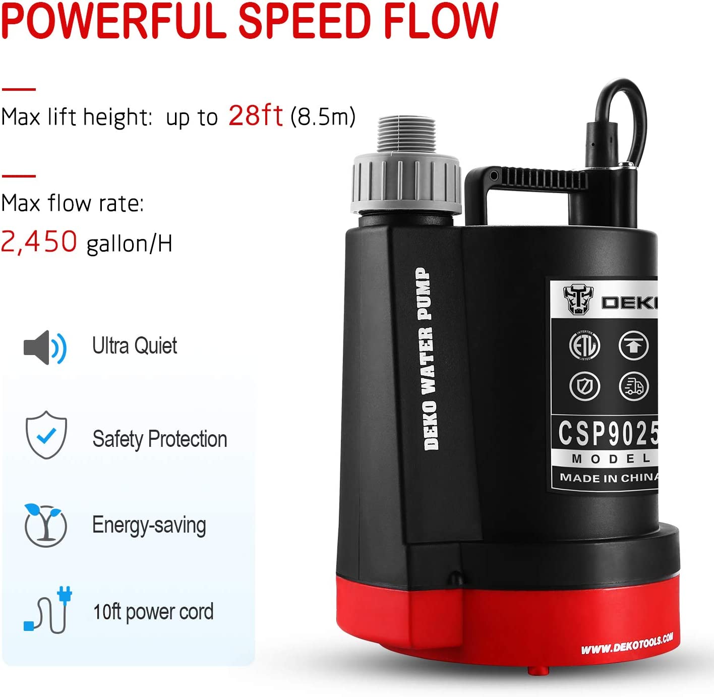 DEKOPRO 1/3HP 2450 GPH Submersible Utility Water Pump High-efficiency Motor Clean Water Removal Drain Pump for Swimming Pool Pond Garden Basement