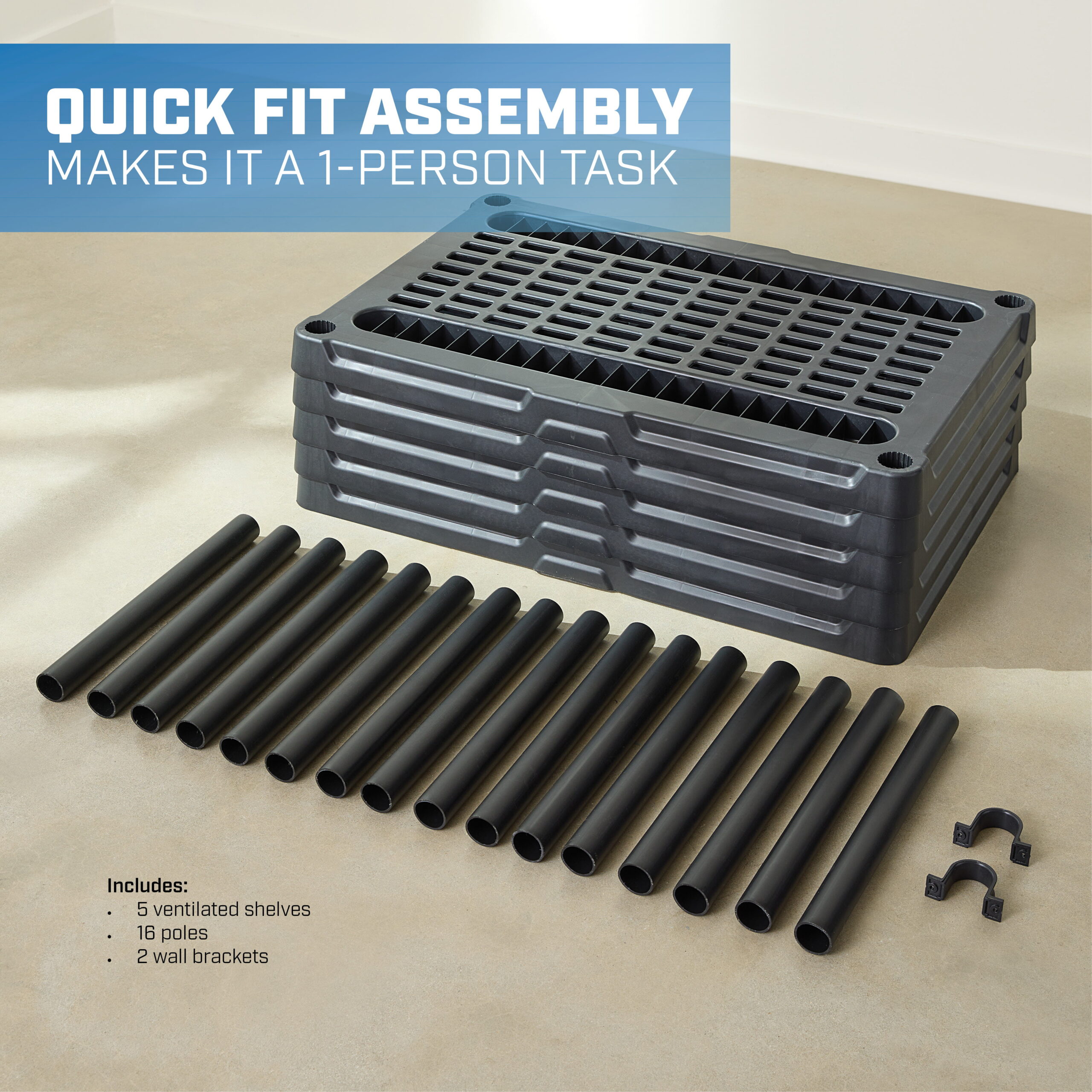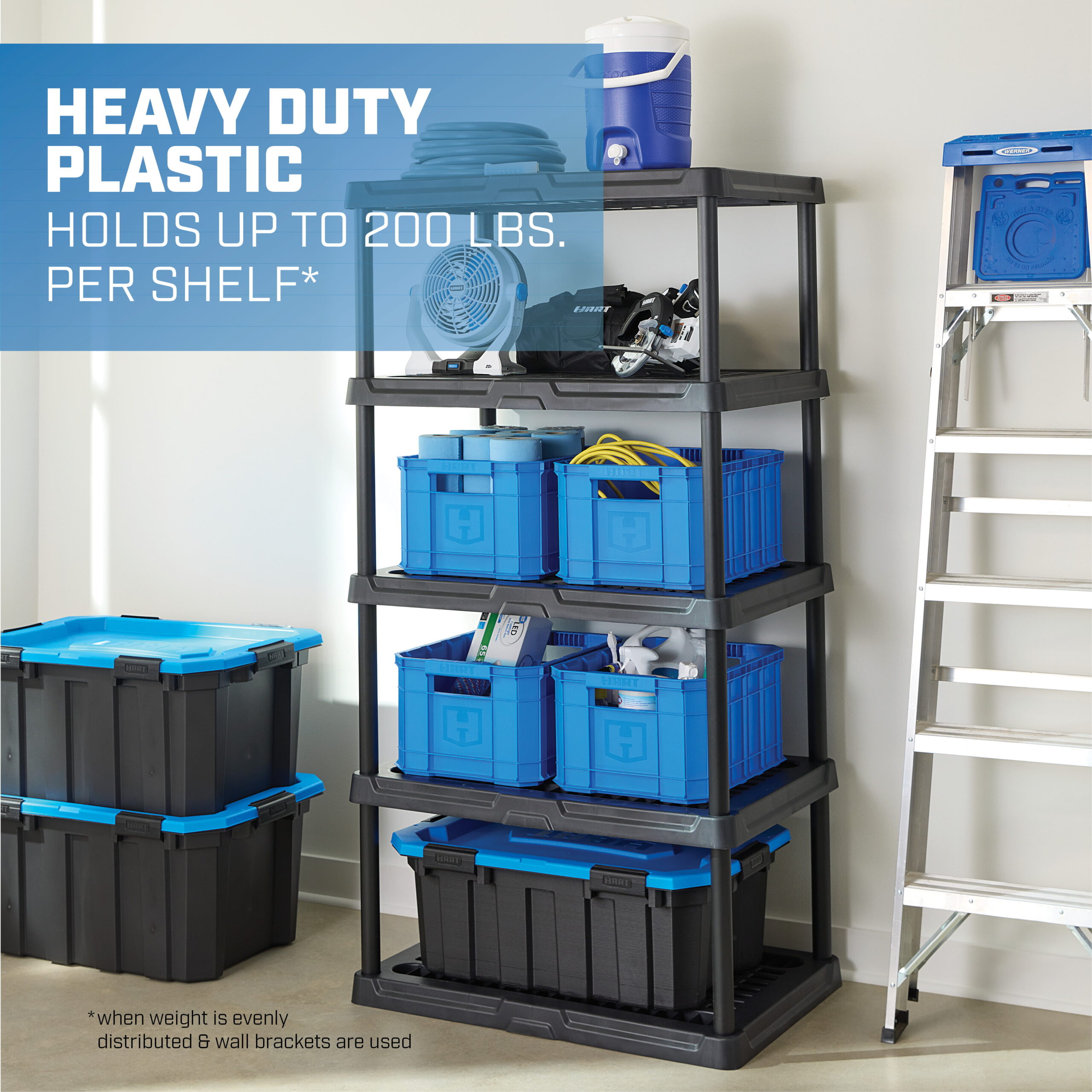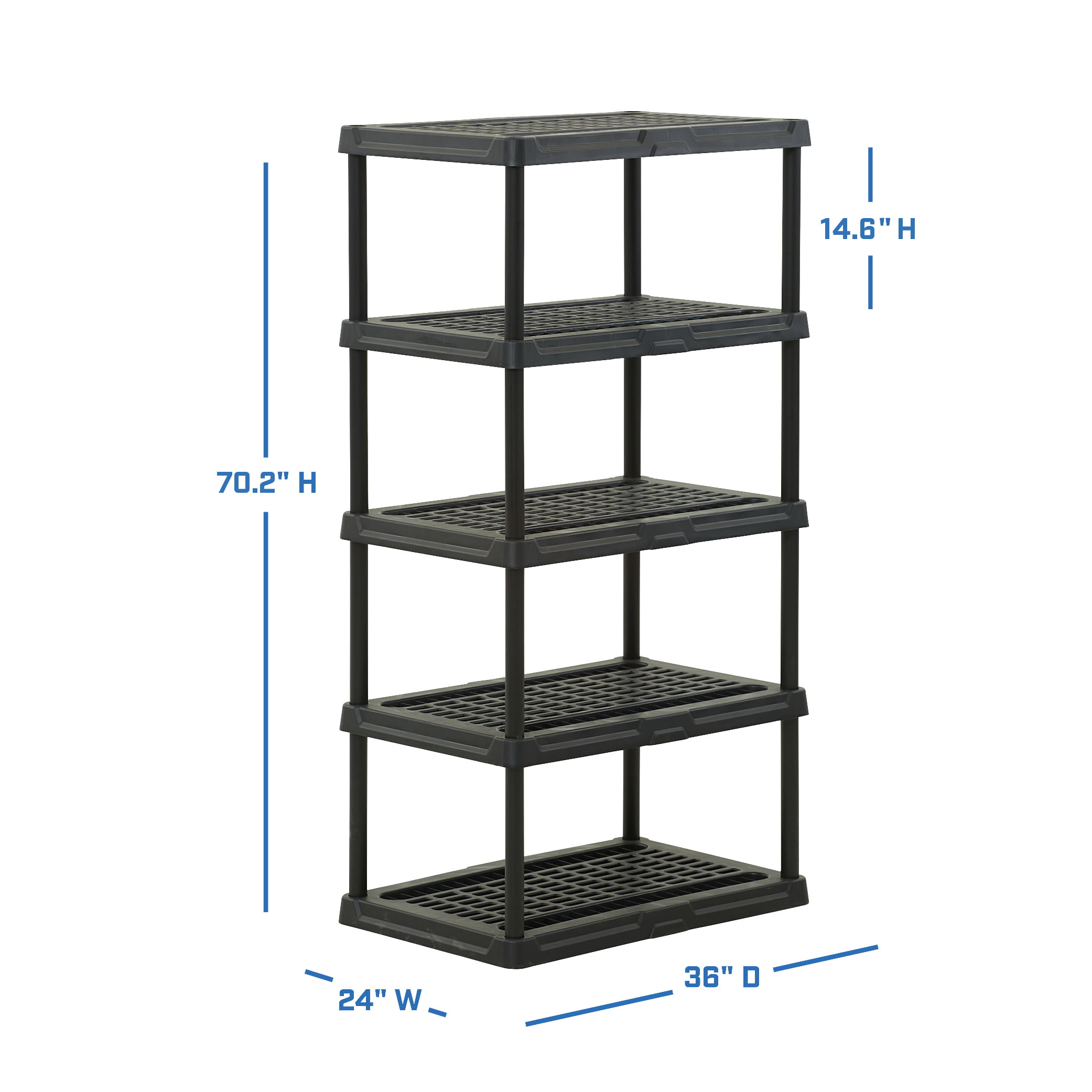 HART 5-Tier 24″x36″x70.2″ Plastic Ventilated Shelf Unit.1000 lbs. Capacity