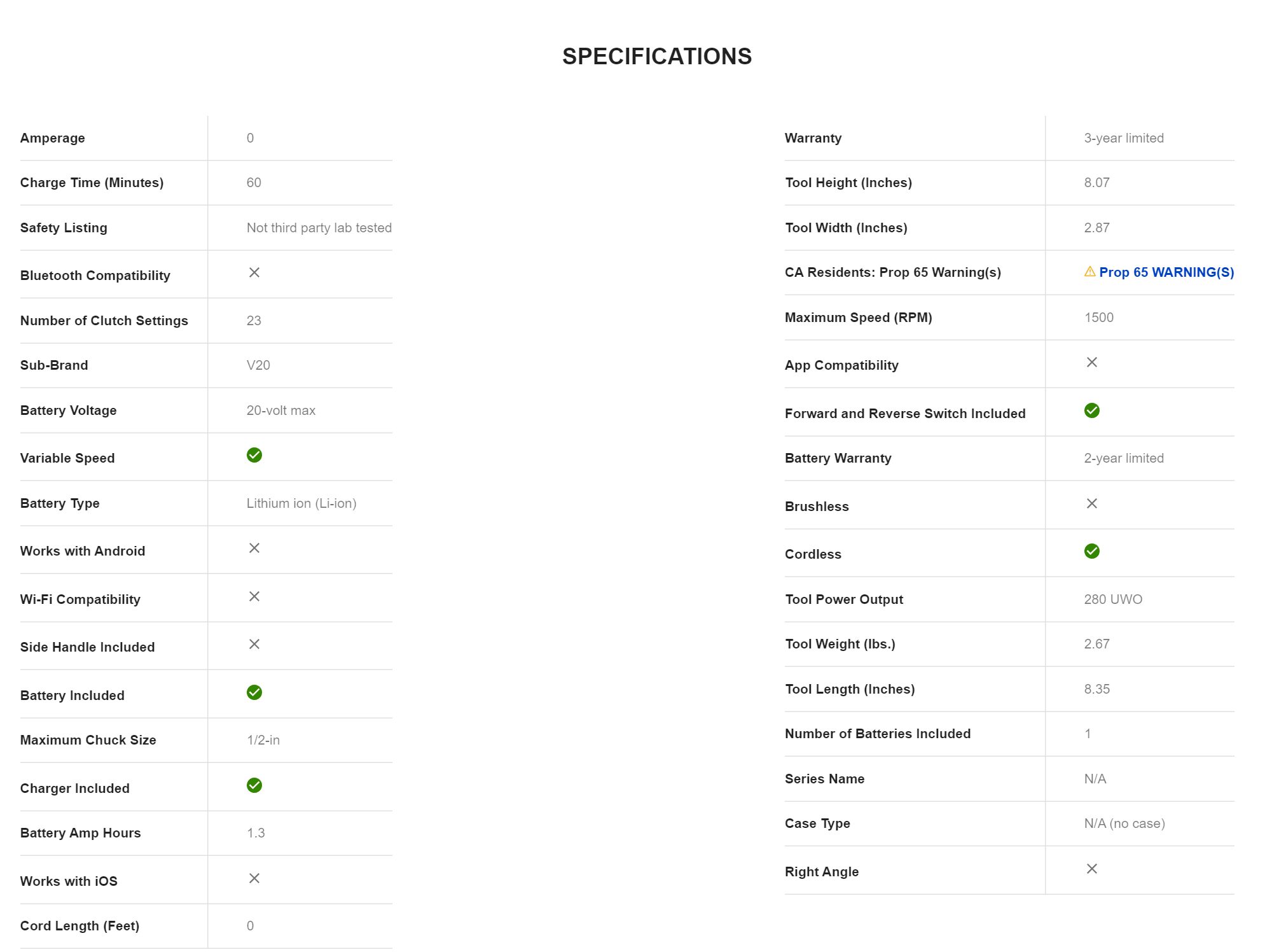 CRAFTSMAN CMCD700C1 V20 20-volt Max 1/2-in Cordless Drill (1-Battery Included and Charger Included)