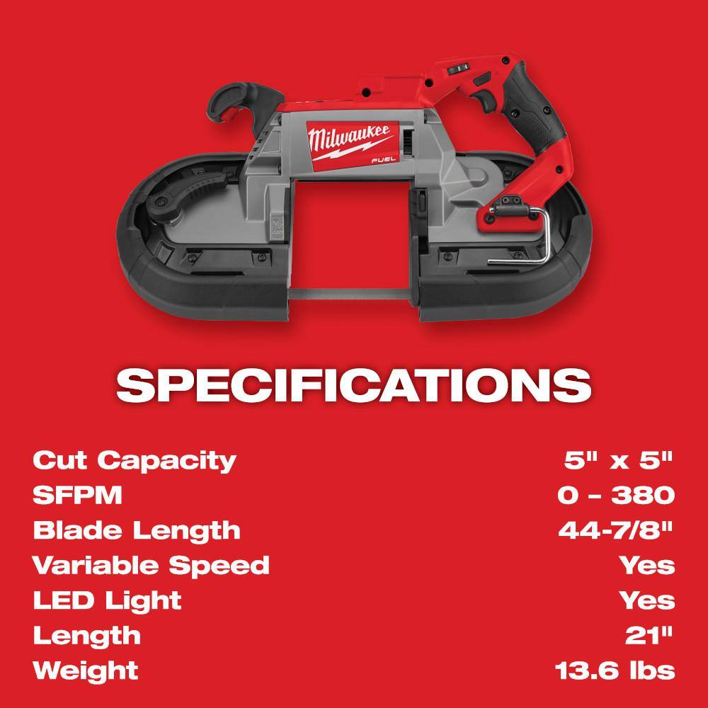 Milwaukee 2729S-20 M18 FUEL 18V Lithium-Ion Brushless Cordless Deep Cut Dual-Trigger Band Saw (Tool-Only)
