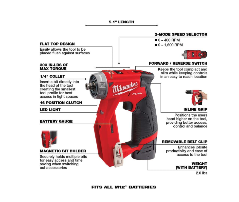 Milwaukee 2505-22-2457-20 M12 FUEL 12-Volt Lithium-Ion Brushless Cordless 4-in-1 Installation 3/8 in. Drill Driver Kit W/ M12 3/8 in. Ratchet