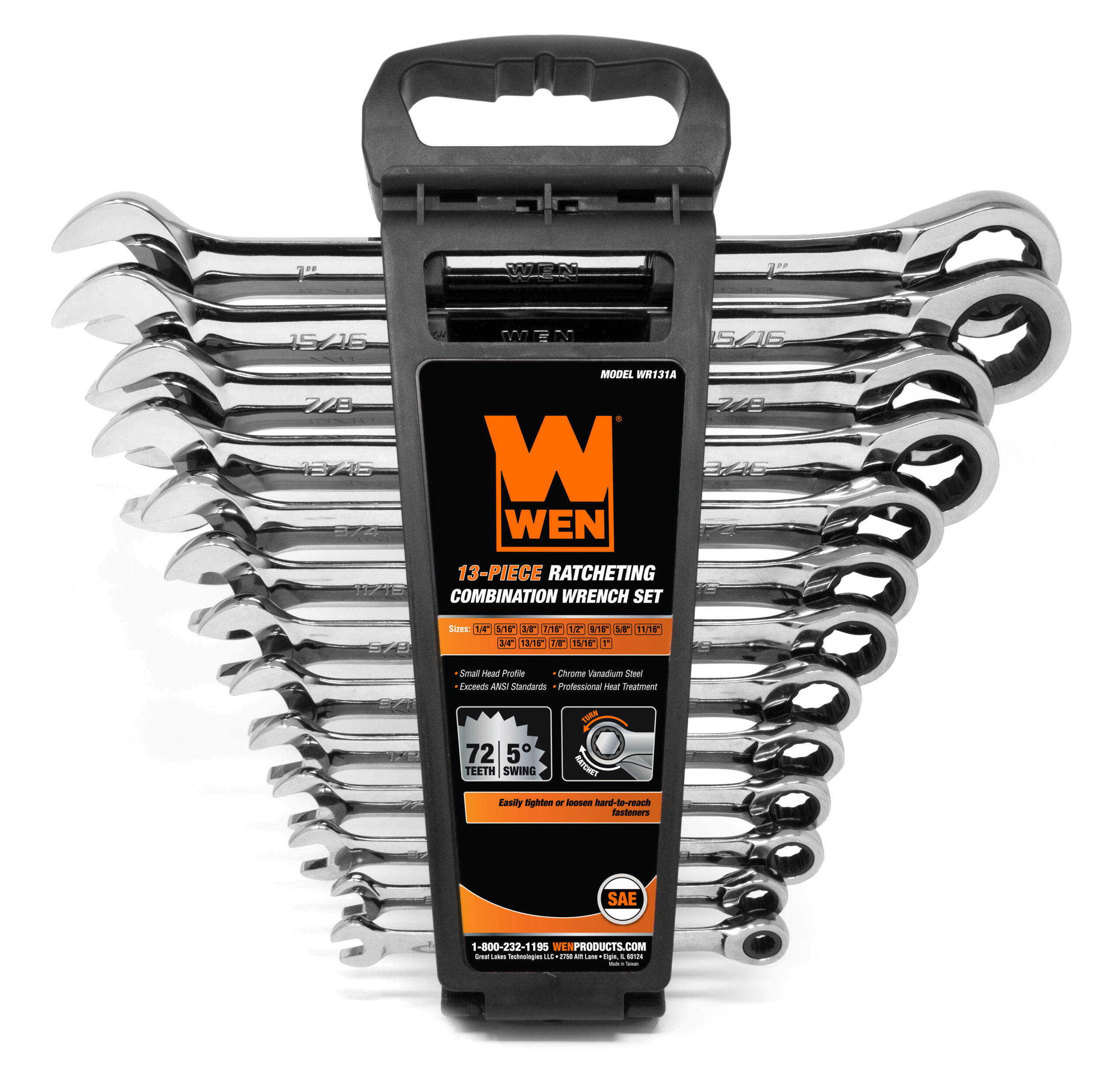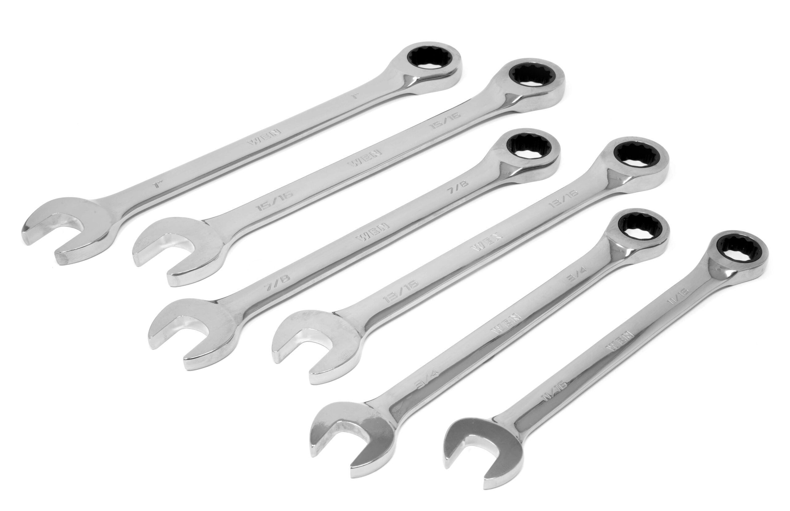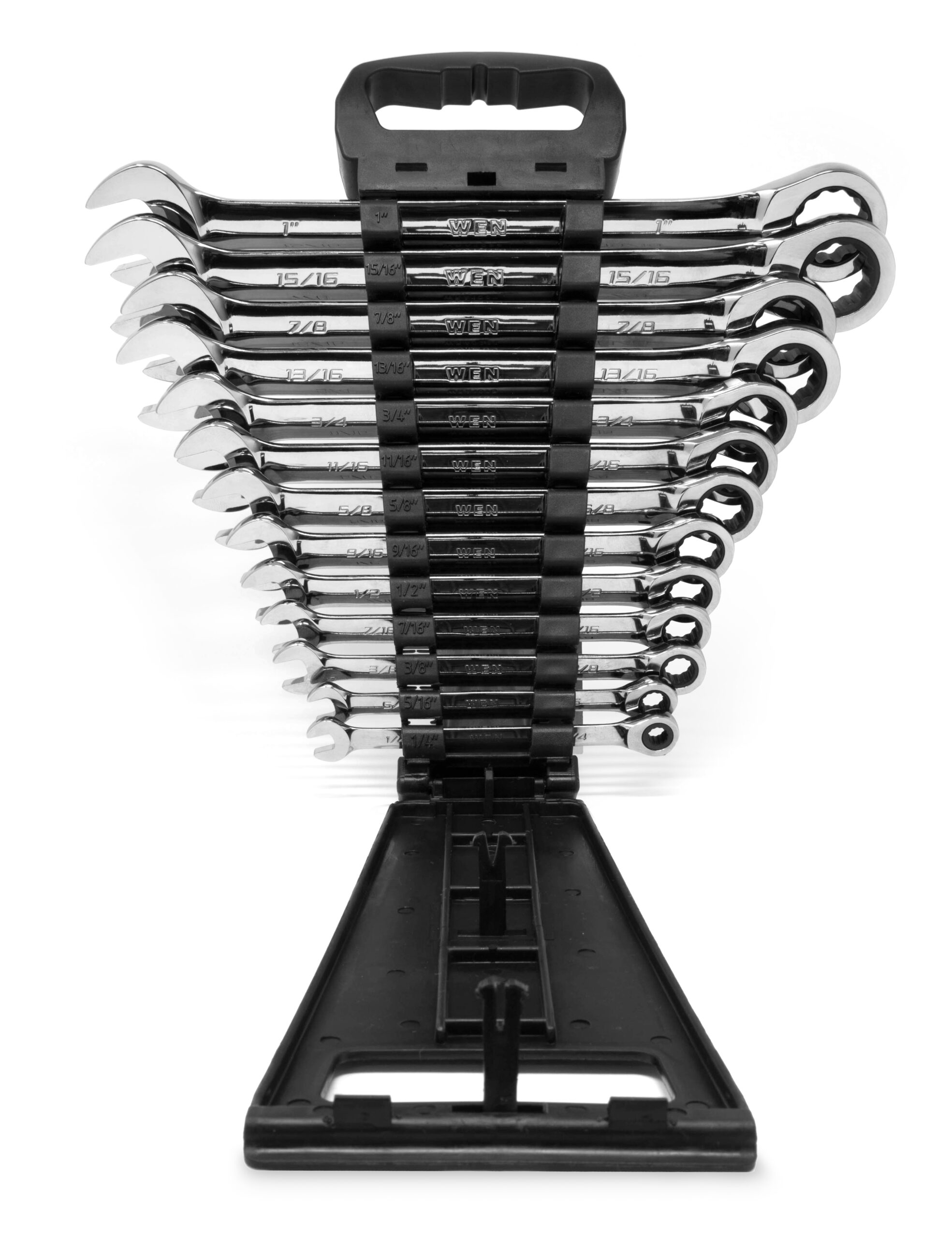 WEN 13-Piece Professional-Grade Ratcheting SAE Combination Wrench Set with Storage Rack