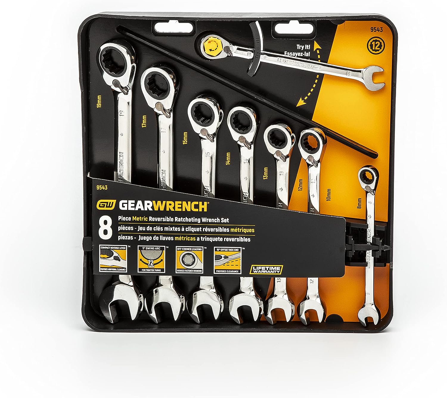 GEARWRENCH 8 Pc. 12 Pt. Reversible Ratcheting Combination Wrench Set. Metric - 9543