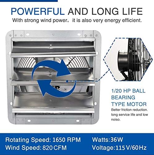 iPower 10 Inch Shutter Exhaust Fan Aluminum.High Speed 1650RPM. 820CFM. 1-Pack. Silver