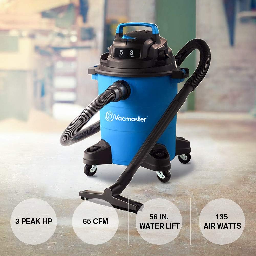 Vacmaster 3 Peak HP 5 Gallon Shop Vacuum with Hepa Filter Powerful Suction Wet Dry Vacuum Cleaner with Blower Function 1-1/4 inch Hose 10ft Power Cord