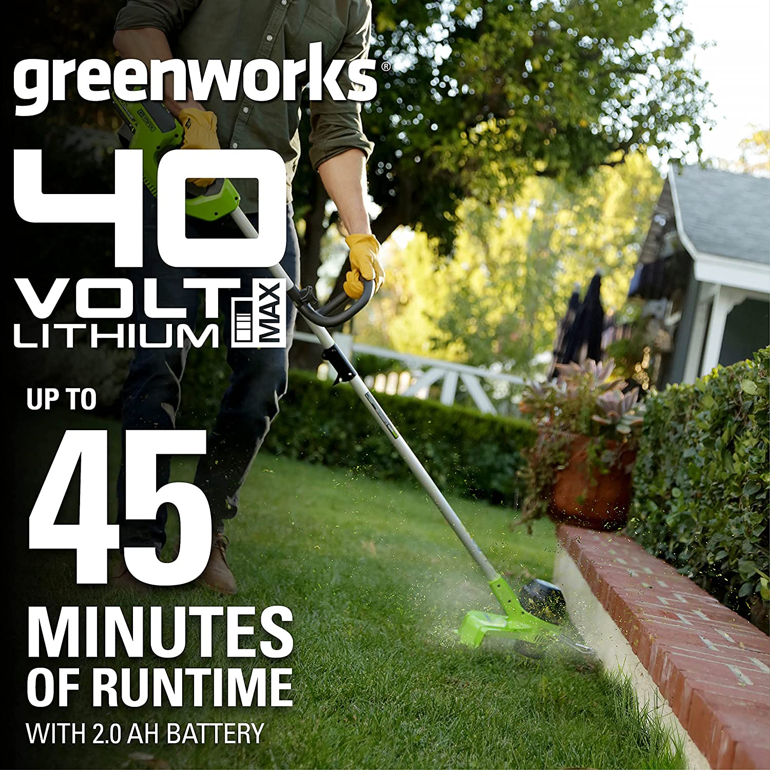Greenworks 40V 12″ Cordless String Trimmer. 2.0Ah Battery and Charger Included