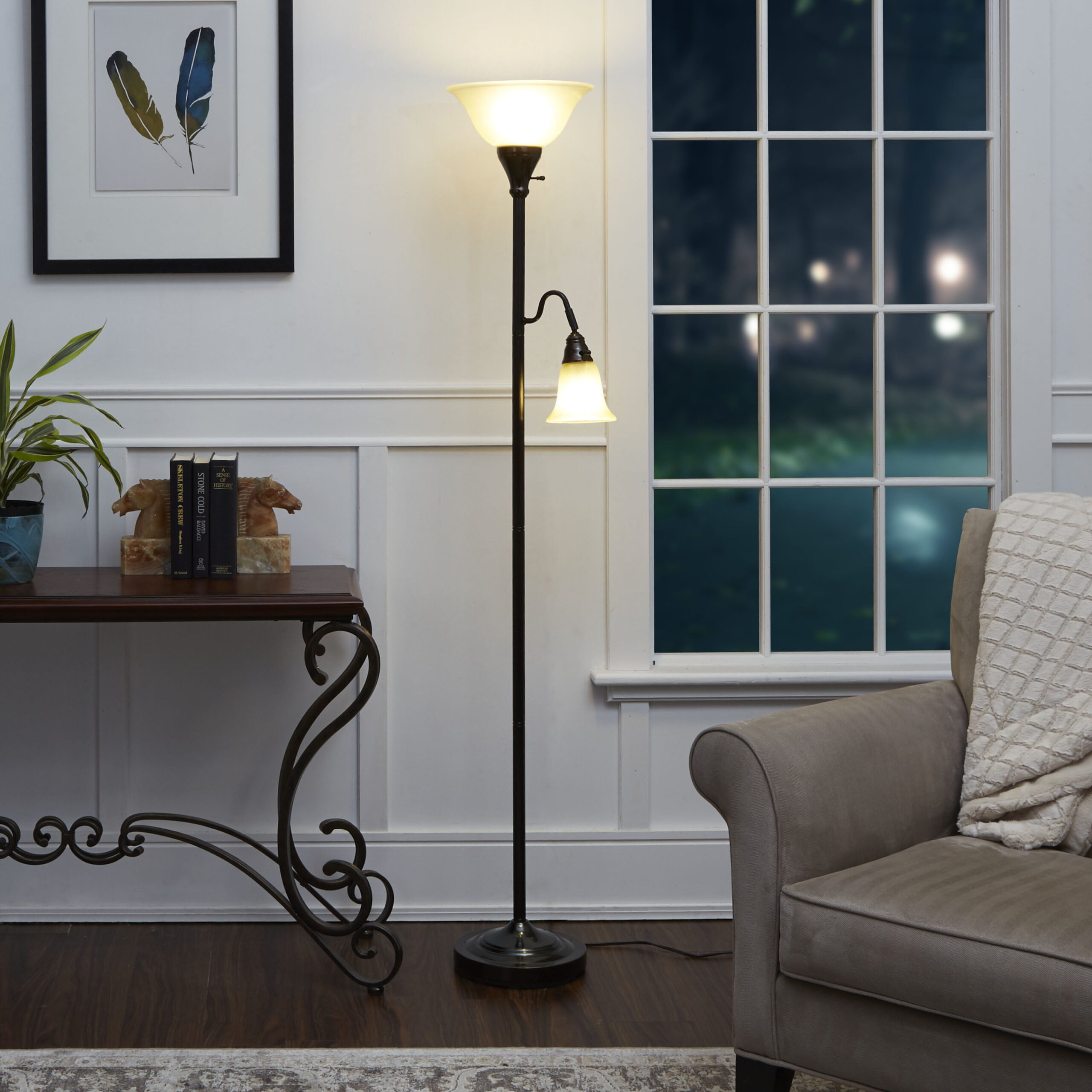 Better Homes & Gardens Metal Combo Floor Lamp with Reading Light and Bulb. Bronze Finish