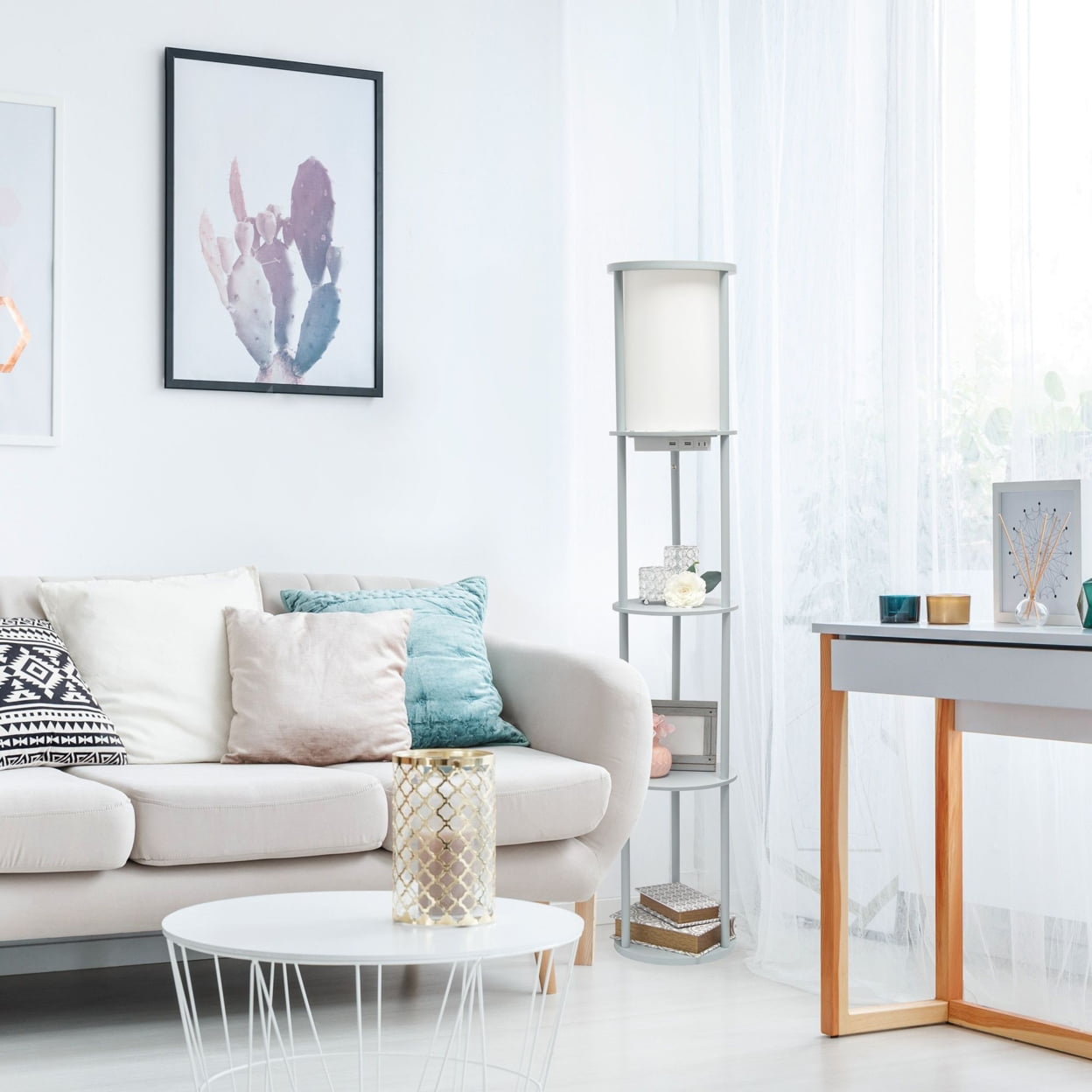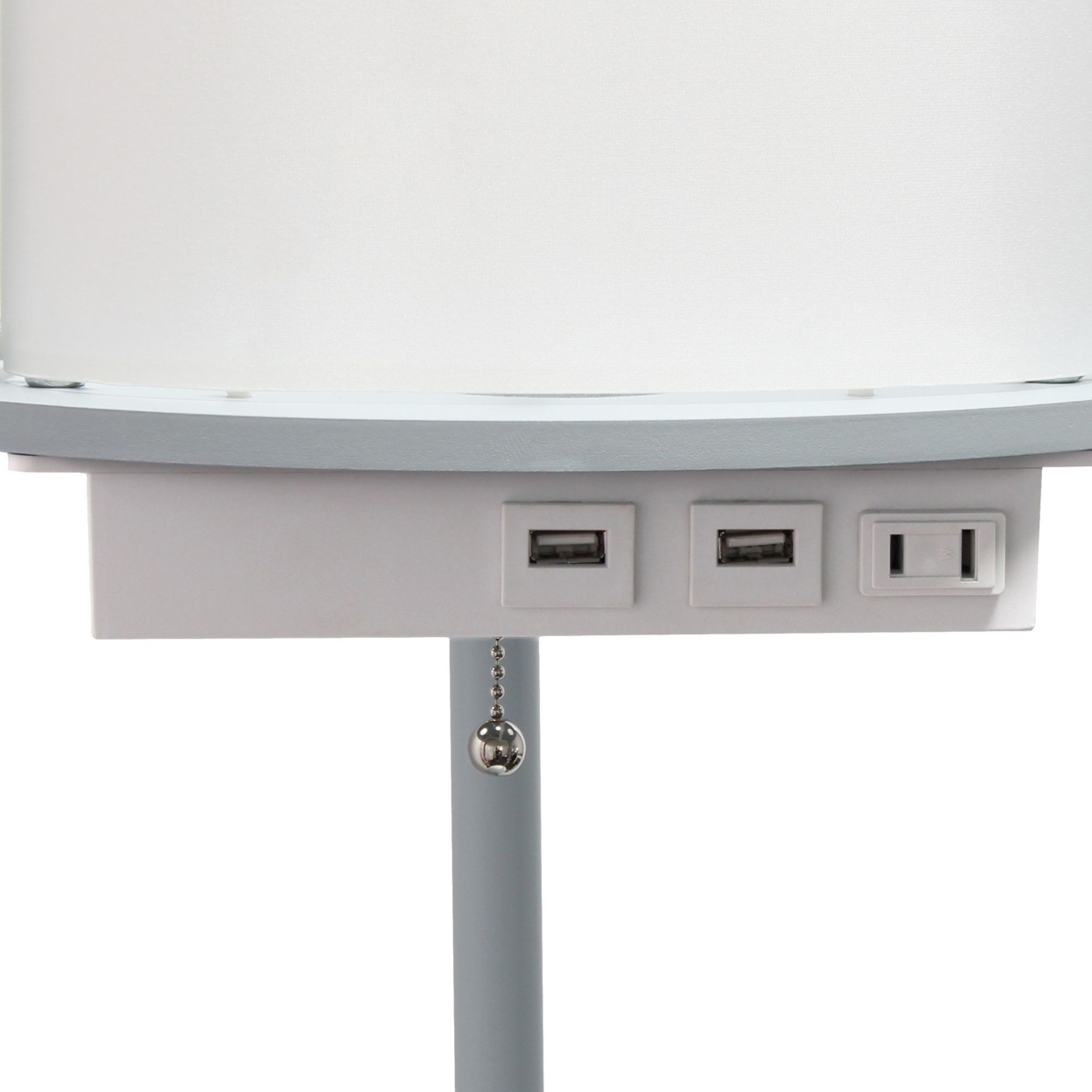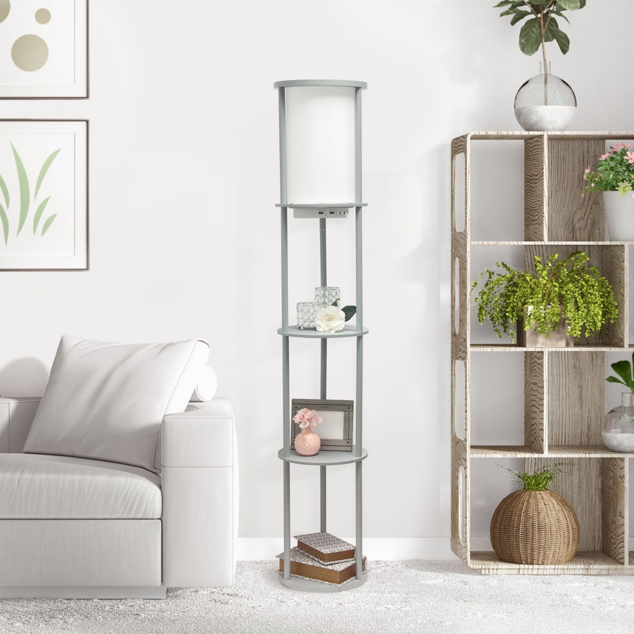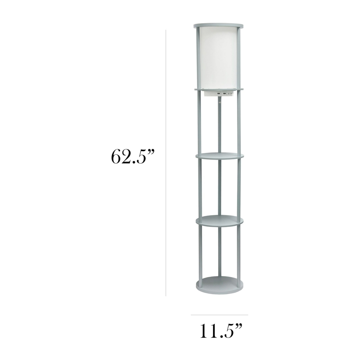 Simple Designs 62.5″ Round Modern Shelf Etagere Organizer Storage Floor Lamp With 2 Usb Charging Ports. Gray