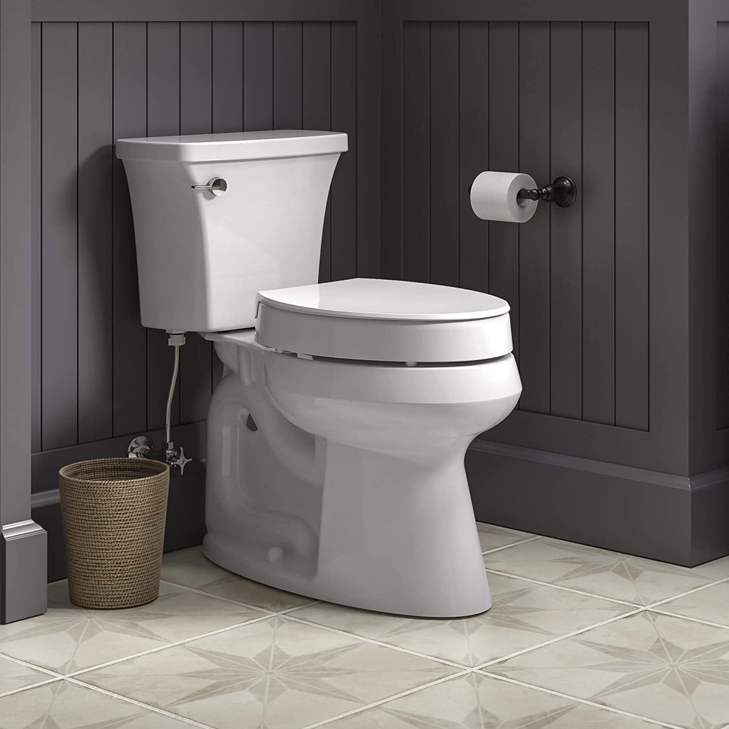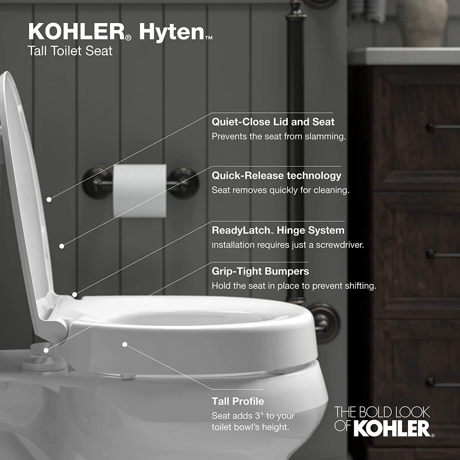 KOHLER Hyten Elevated Quiet-Close Elongated toilet seat. White