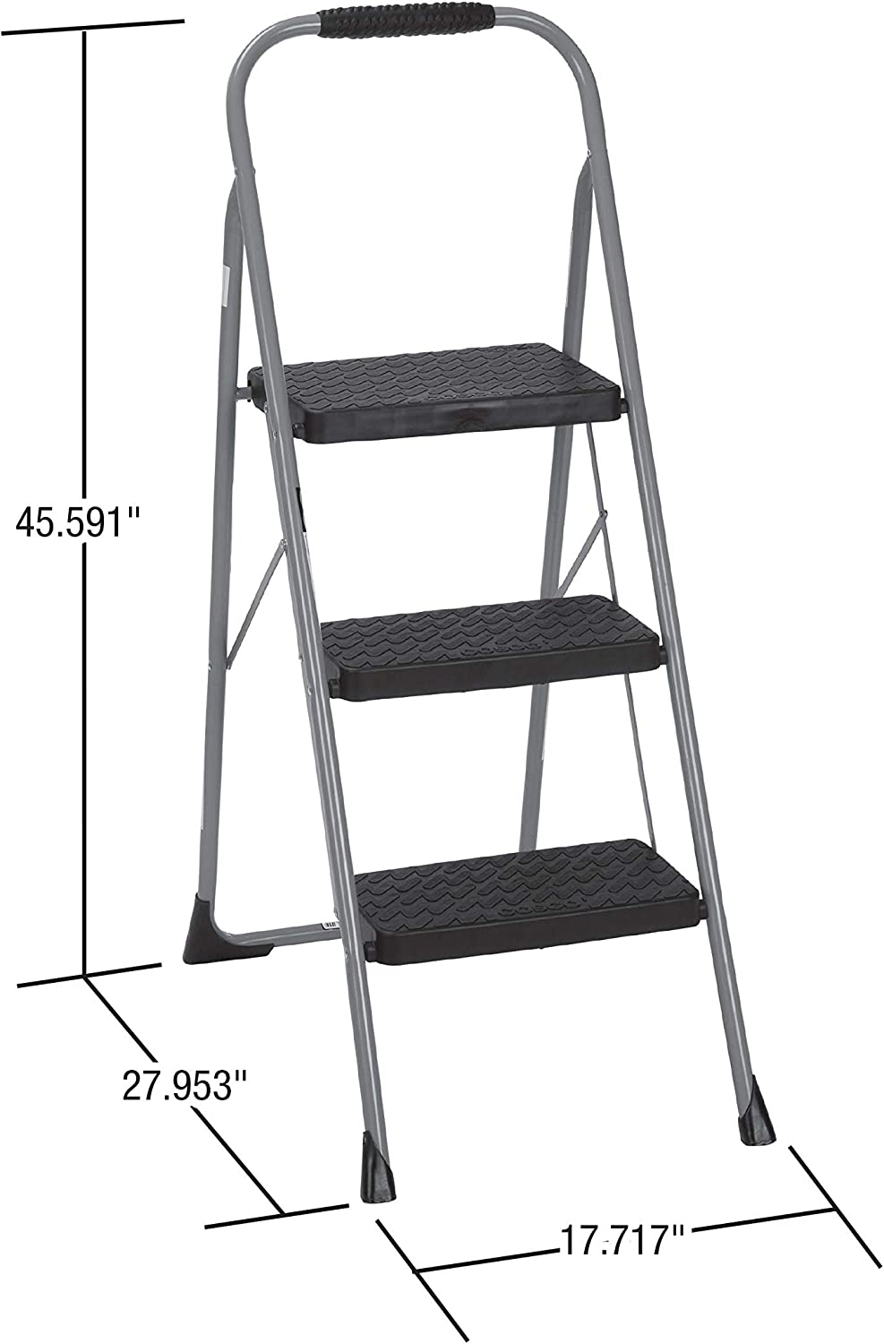 Cosco 11408PBL1E Three Big Folding Step Stool with Rubber Hand Grip. Platinum