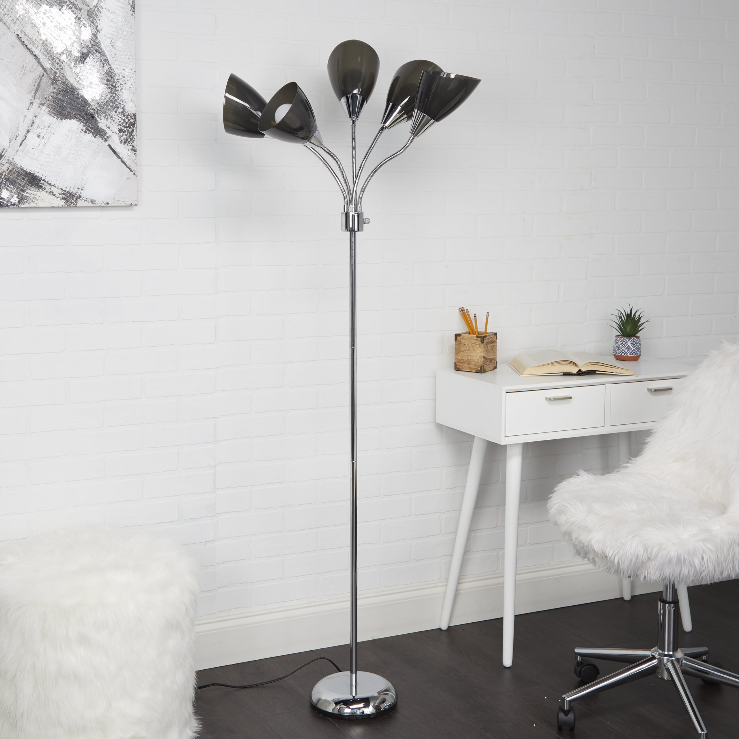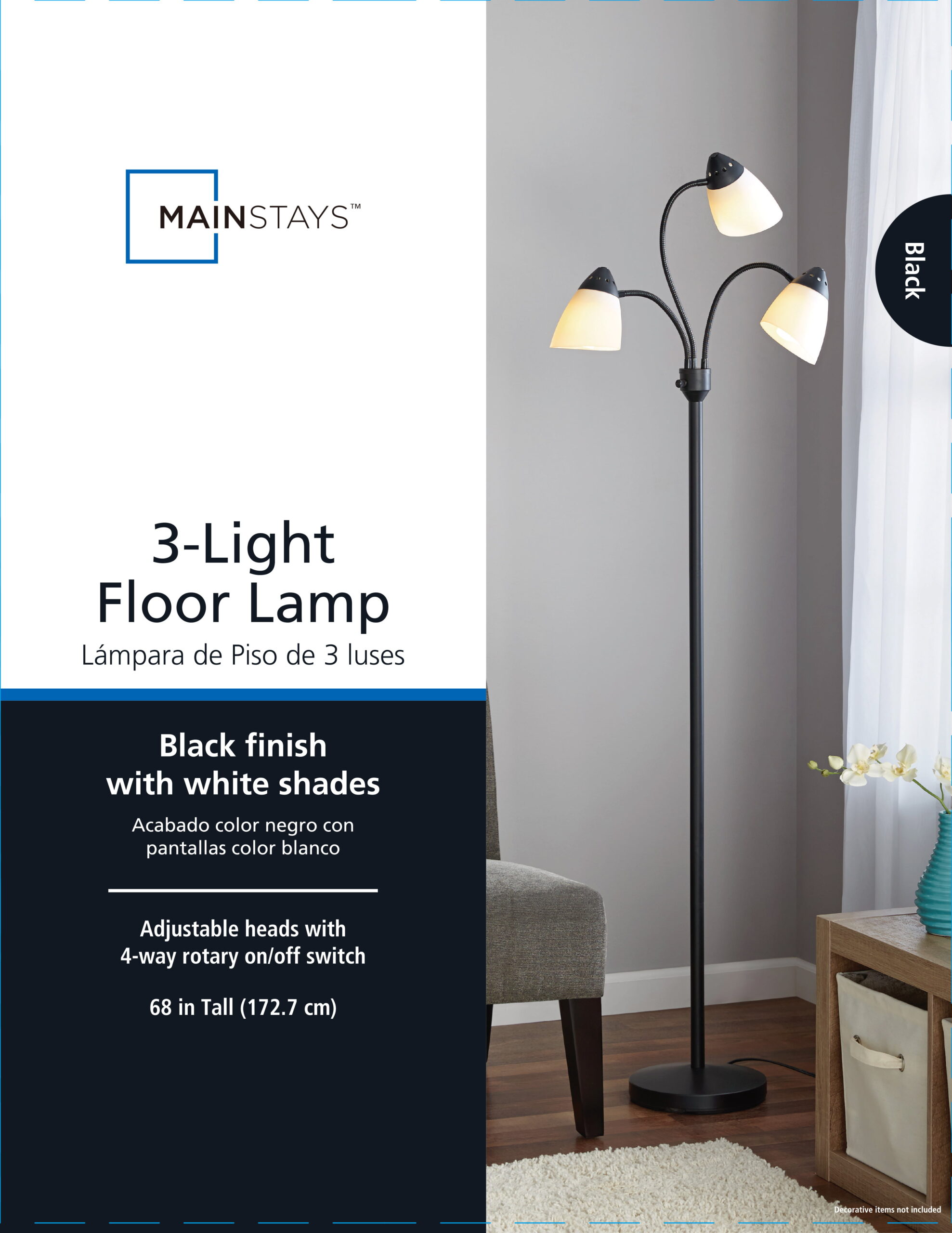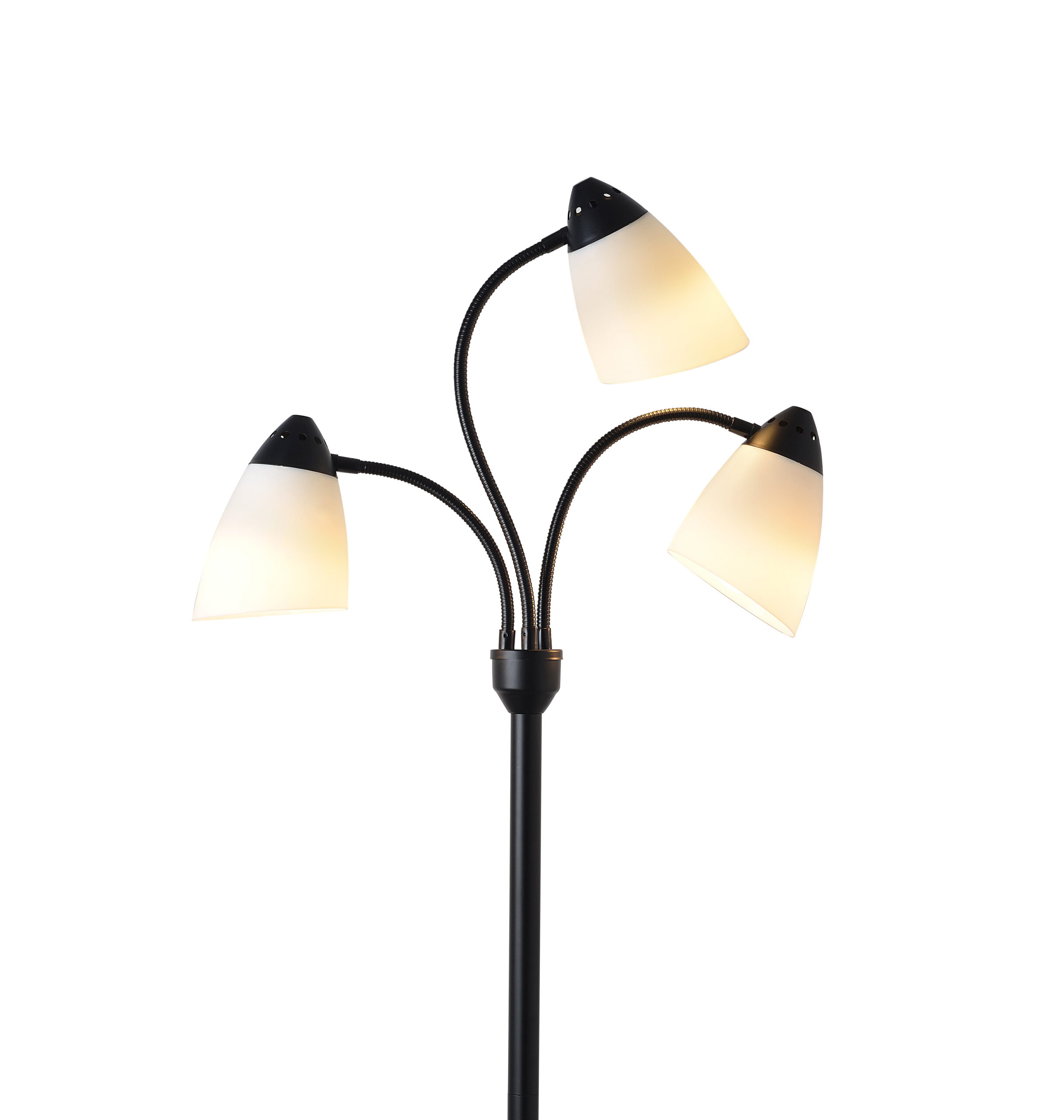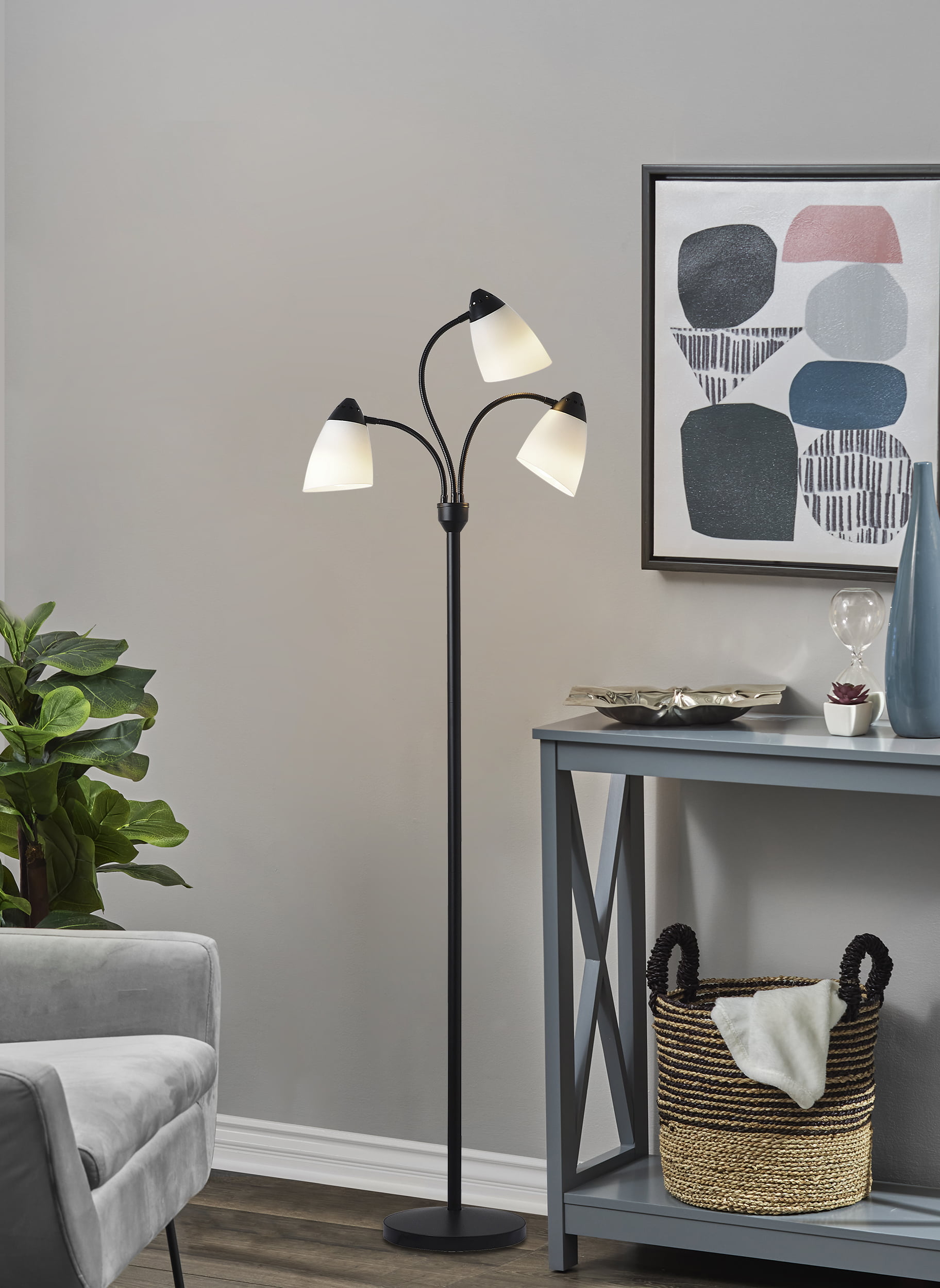 Mainstays 3 Head Floor Lamp Black with White Plastic Shades and with LED Bulbs Included