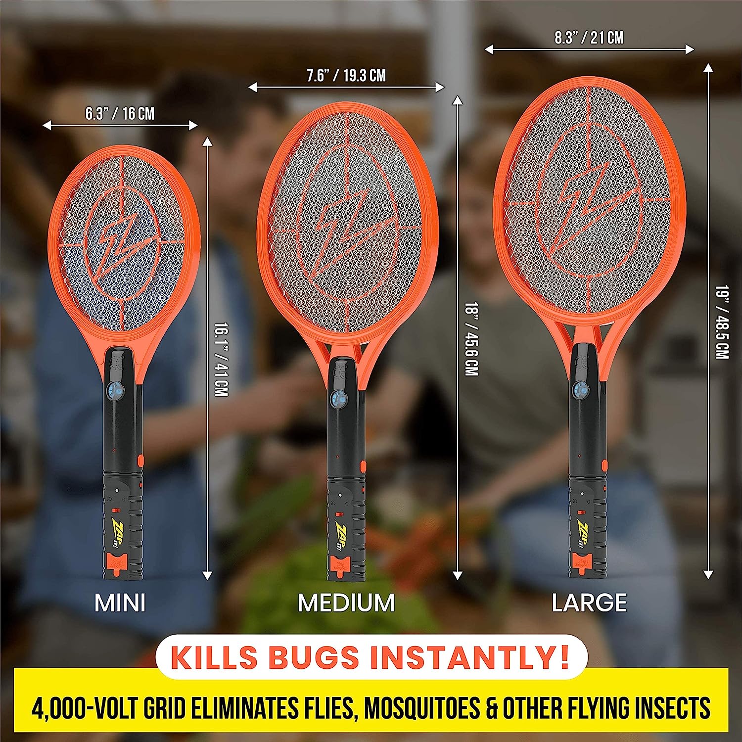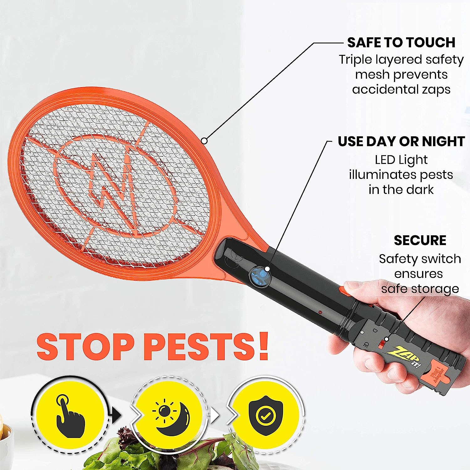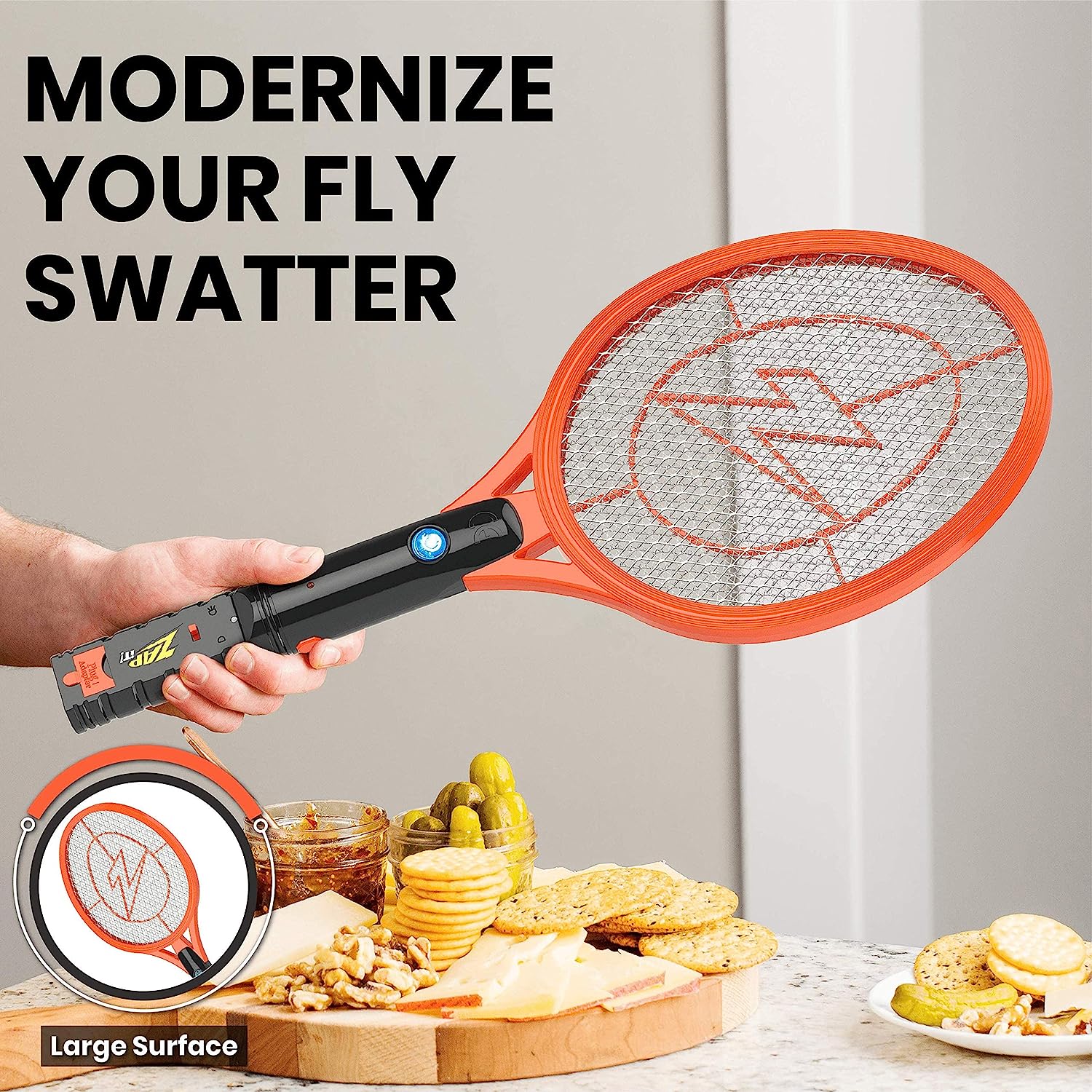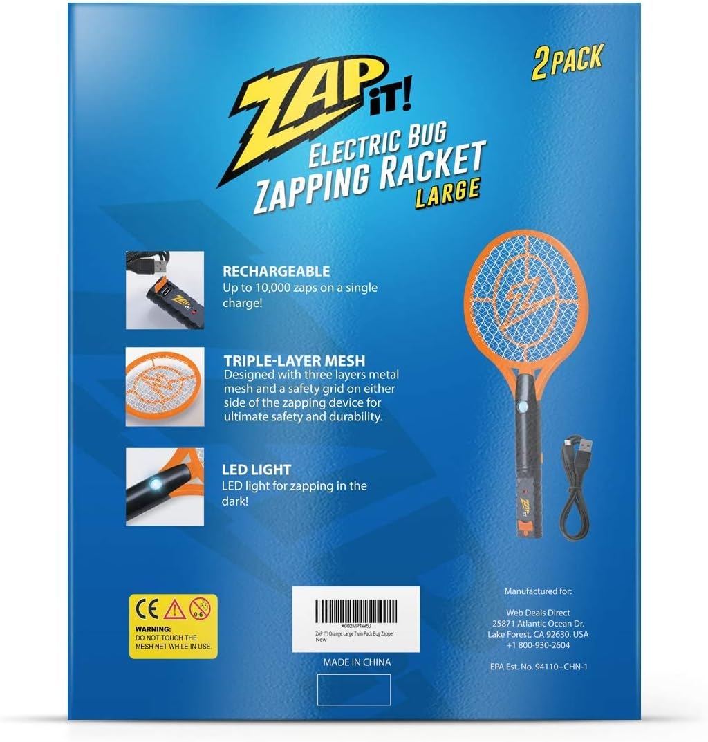 ZAP iT! Electric Fly Swatter Racket & Mosquito Zapper - High Duty 4.000 Volt Electric Bug Zapper Racket - Fly Killer USB Rechargeable Fly Zapper Indoor Safe - 2 Pack (Large. Orange)