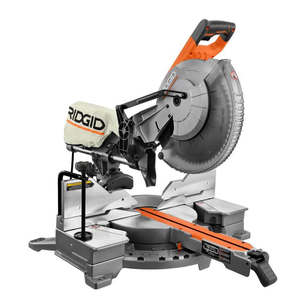 RIDGID R4222-R84044B 15 Amp Corded 12 in. Dual Bevel Sliding Miter Saw with 18V Cordless 10 oz. Caulk Gun and Adhesive Gun