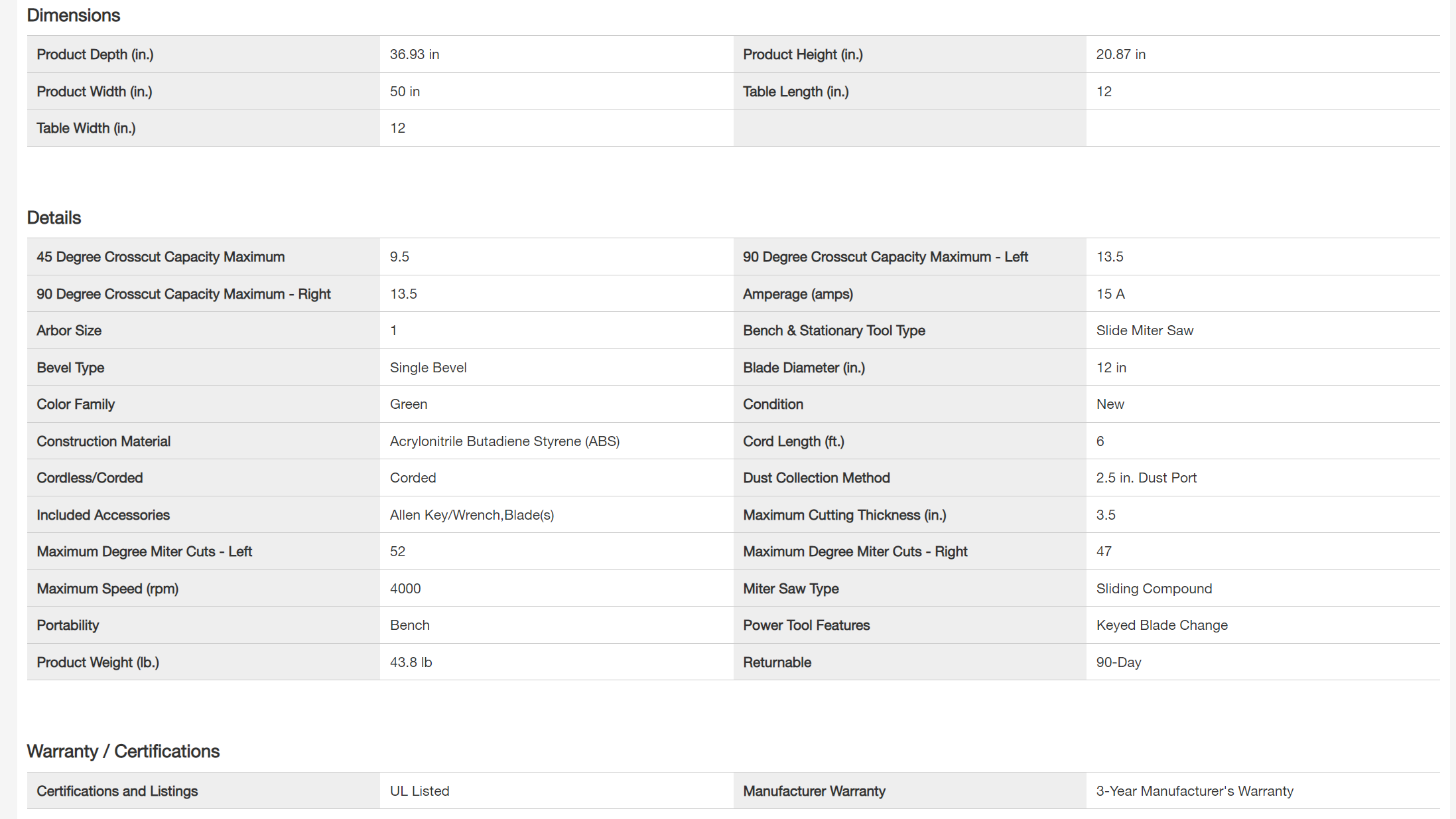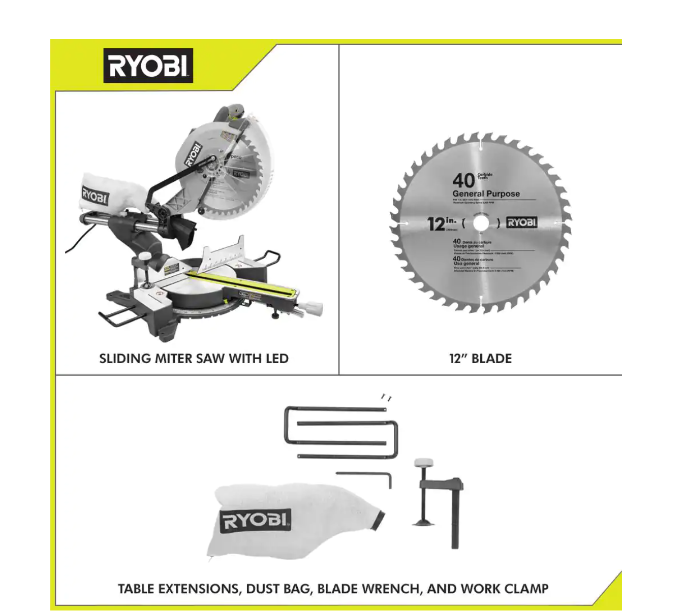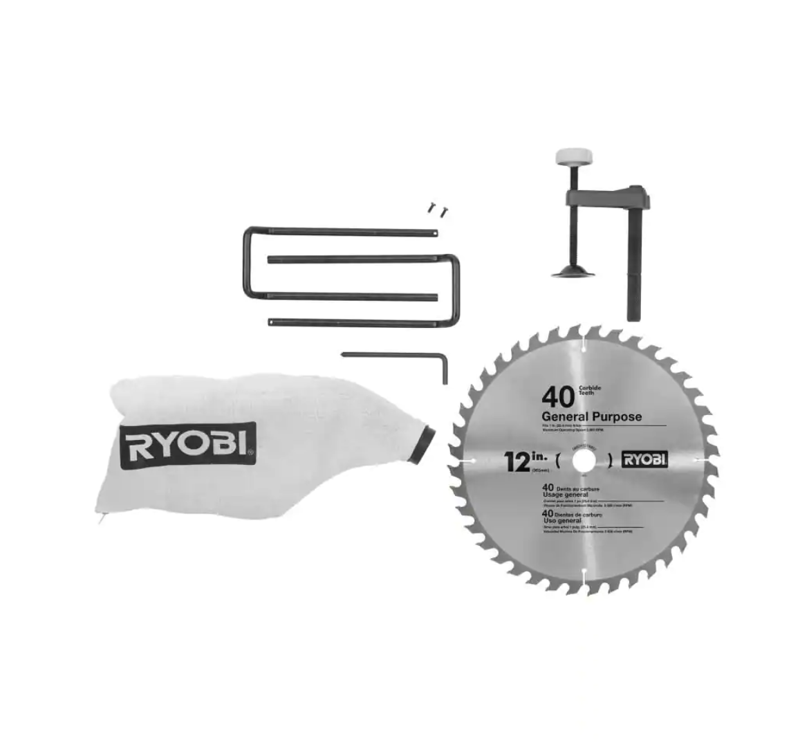 RYOBI TSS121-A181201 15 Amp 12 in. Sliding Compound Miter Saw with 12 in. 40 Carbide Teeth Thin Kerf Miter Saw Blade