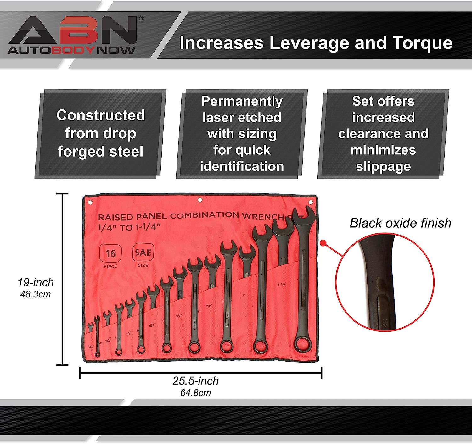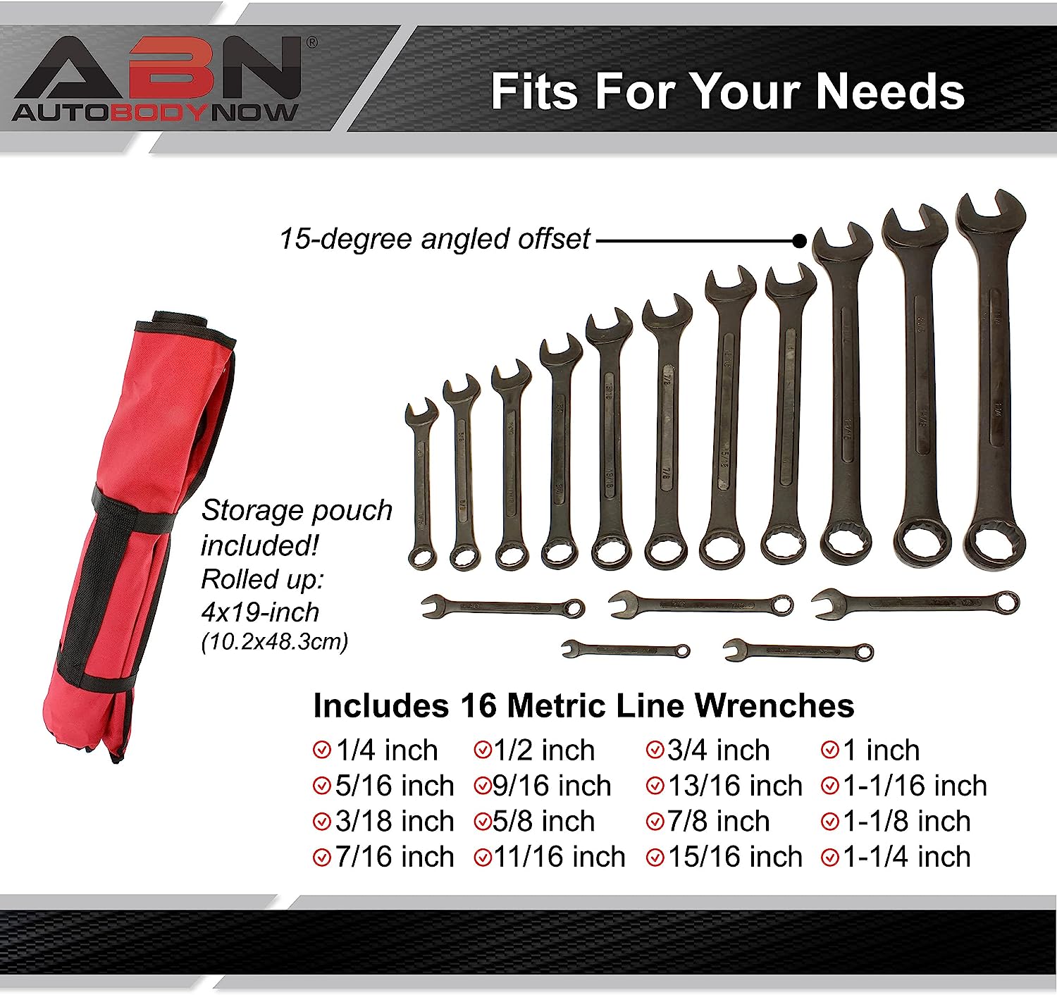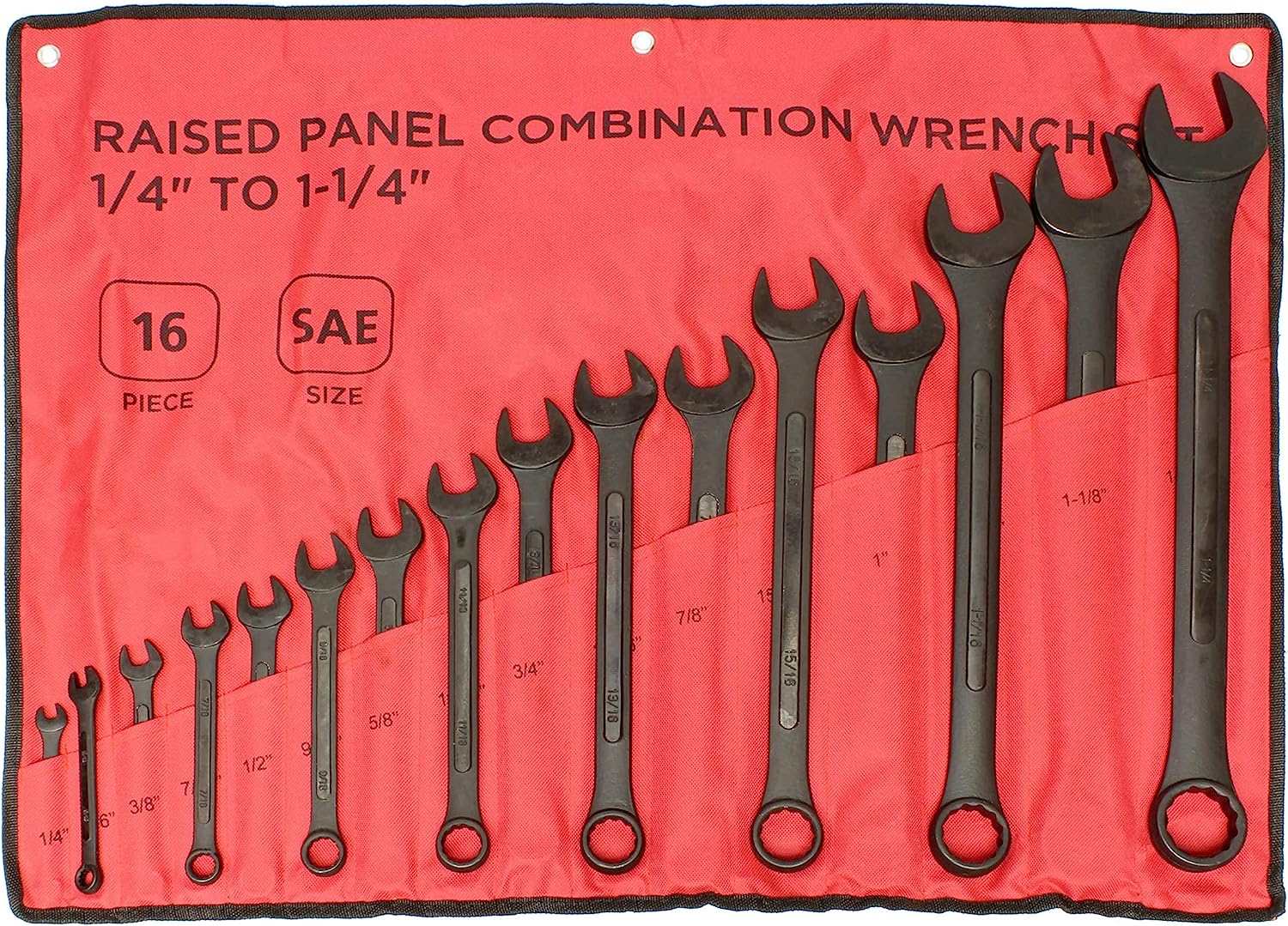 ABN Standard Wrenches Set - 16 Piece SAE Combination Wrench Set 1/4in to 1-1/4in SAE Wrench Set with Roll Up Pouch