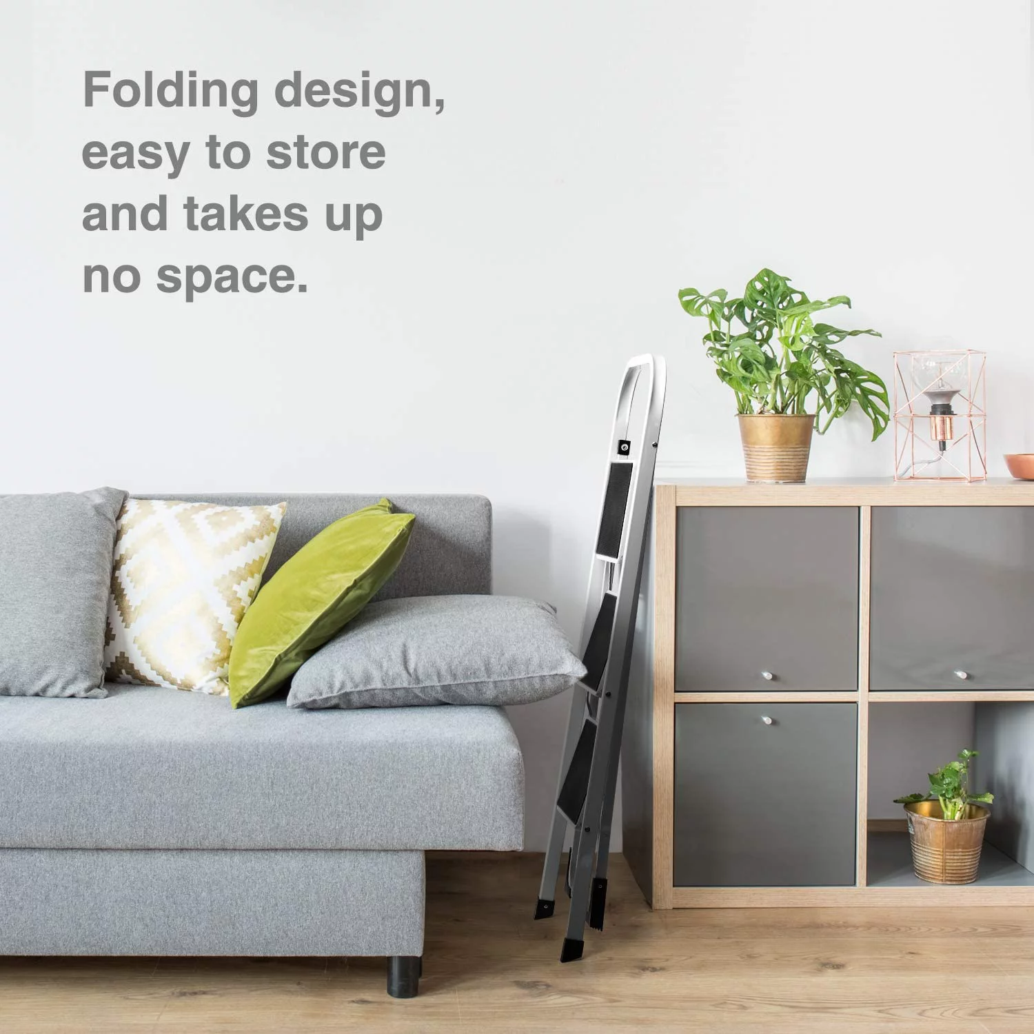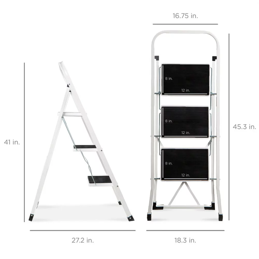 WAYPLUS 3 Step Steel Ladder. Folding Portable Step Stool w/ Non-Slip Feet. Rubber Pads. 330lb Capacity