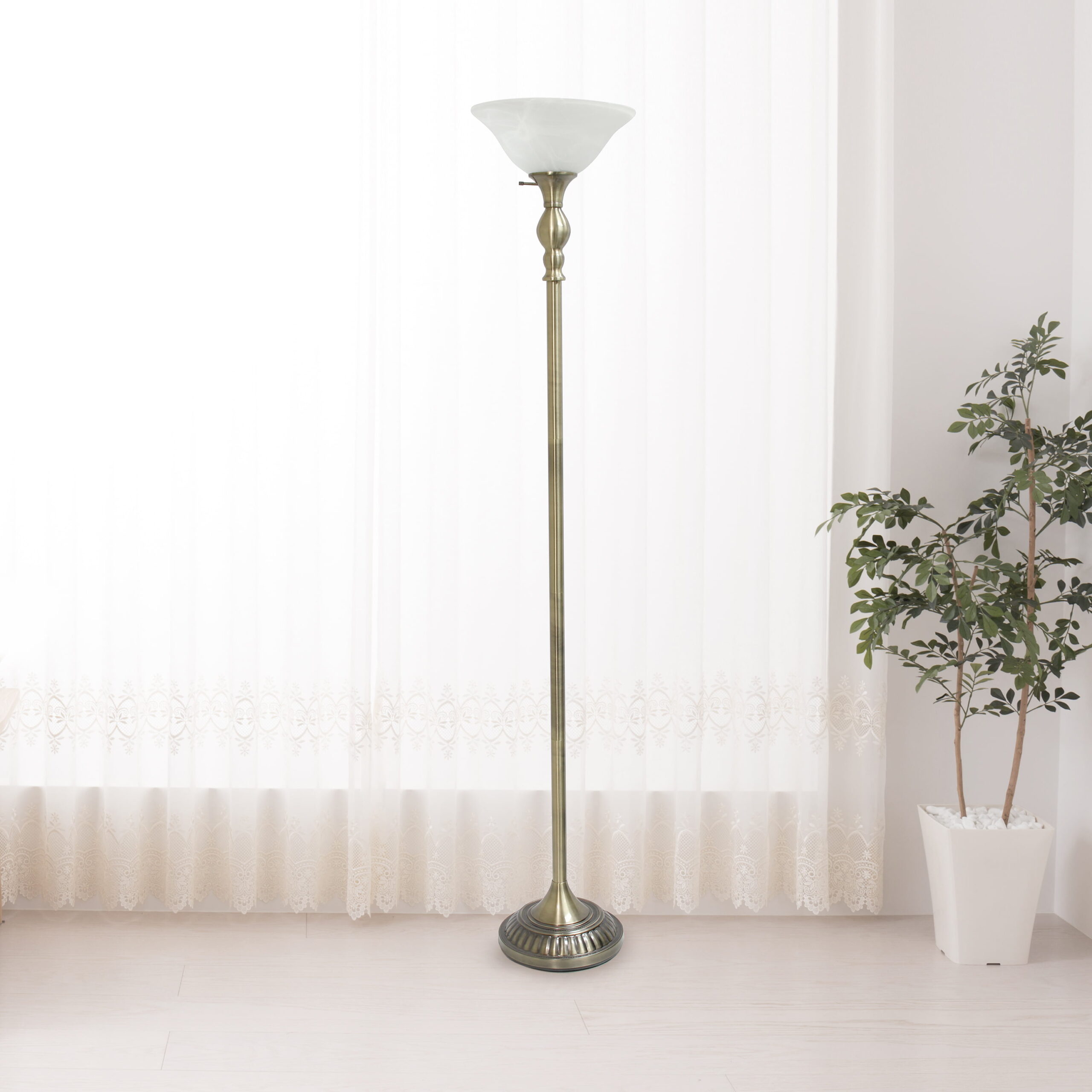 Elegant Designs 1 Light Torchiere Floor Lamp with Marbleized White Glass Shade