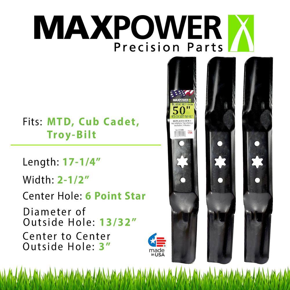 MaxPower 561558B 3 Blade Set for Many 50 in. Cut MTD. Cub Cadet. Craftsman Mowers Replaces OEM #-s 942-05052A and 742-05052A