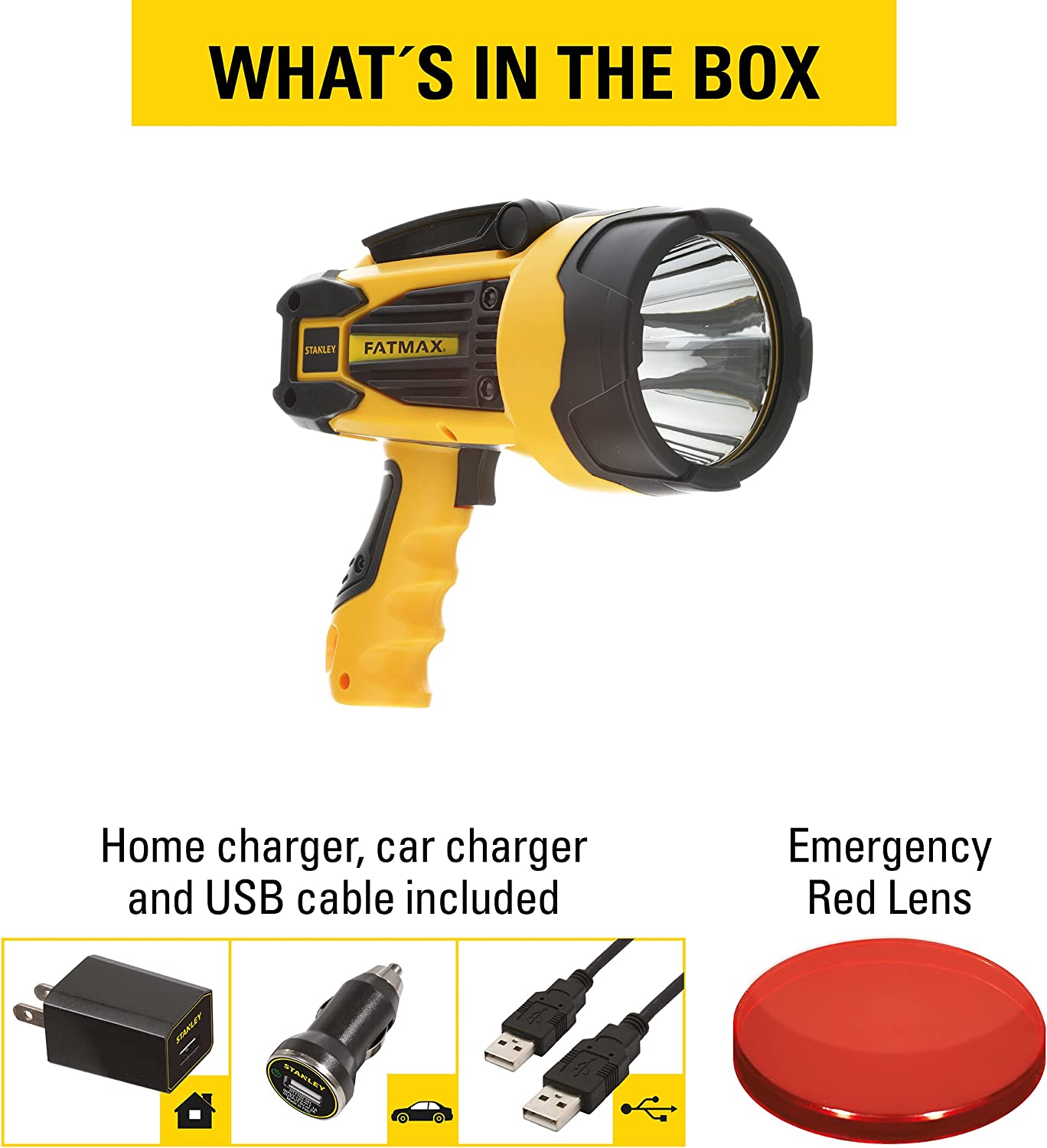 STANLEY FATMAX SL10LEDS Rechargeable 2200 Lumen Lithium Ion Ultra Bright LED Spotlight Flashlight with USB Power Charger