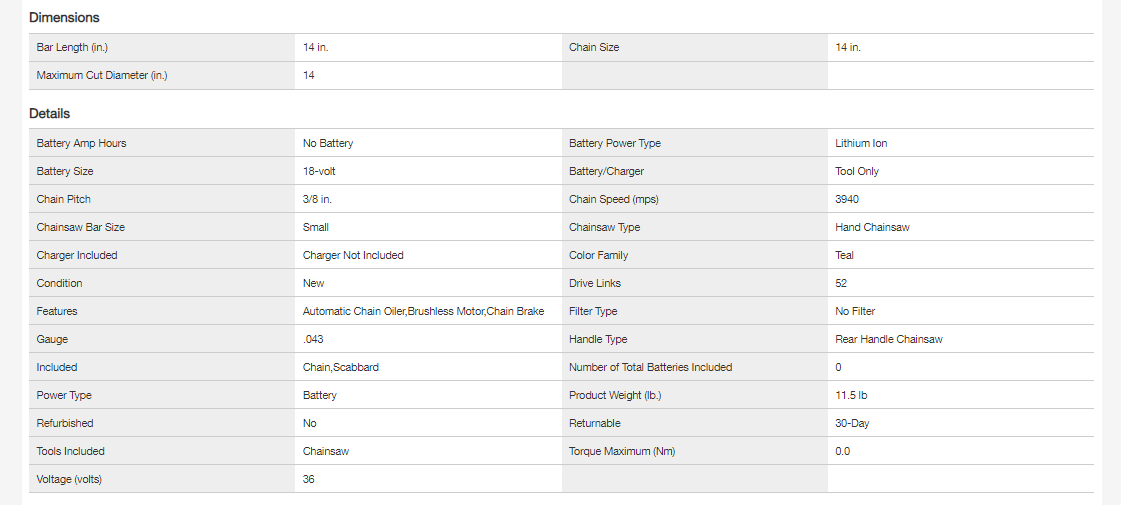 Makita XCU07Z 14 in. 18-Volt X2 (36-Volt) LXT Lithium-Ion Brushless Cordless Chain Saw (Tool-Only)