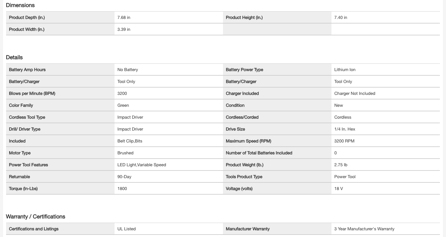 RYOBI P237 ONE+ 18V Cordless 3-Speed 1/4 in. Hex Impact Driver (Tool Only)