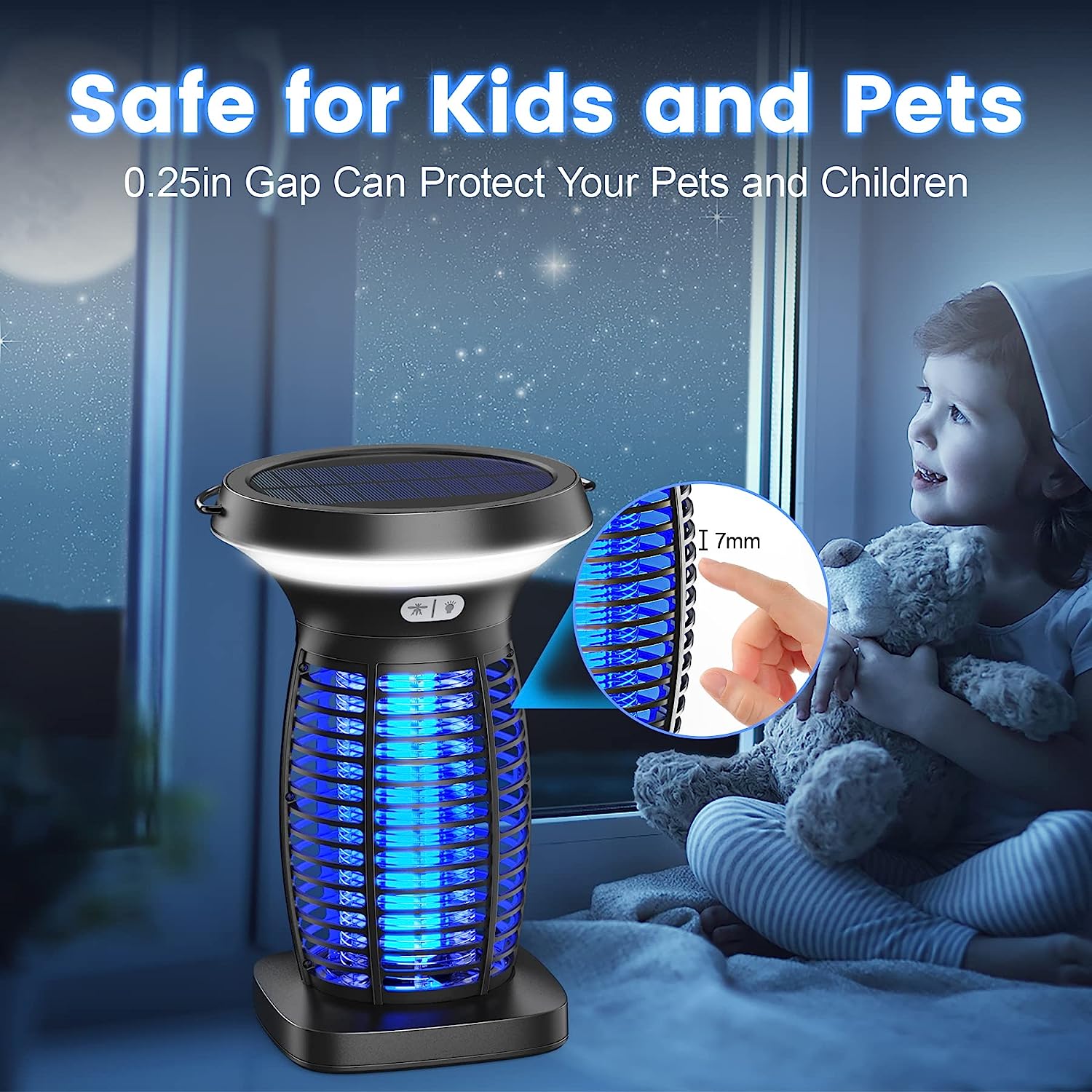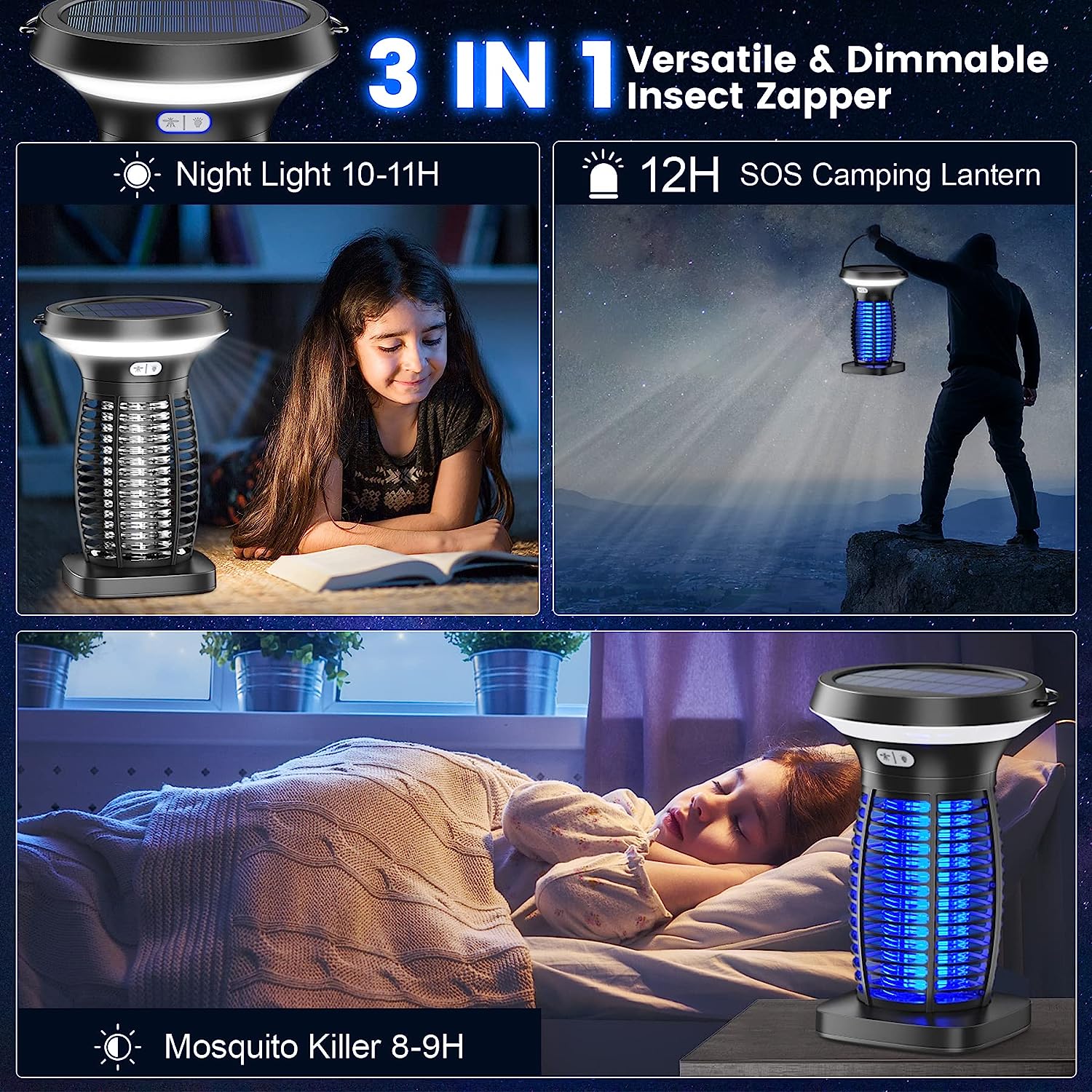 Zechuan Solar Bug Zapper Outdoor Waterproof. High Powered Pest Control Electric Mosquito Zapper Killer Indoor. Rechargeable Insect Trap Fly Zapper for Home. Patio. Backyard. Camping