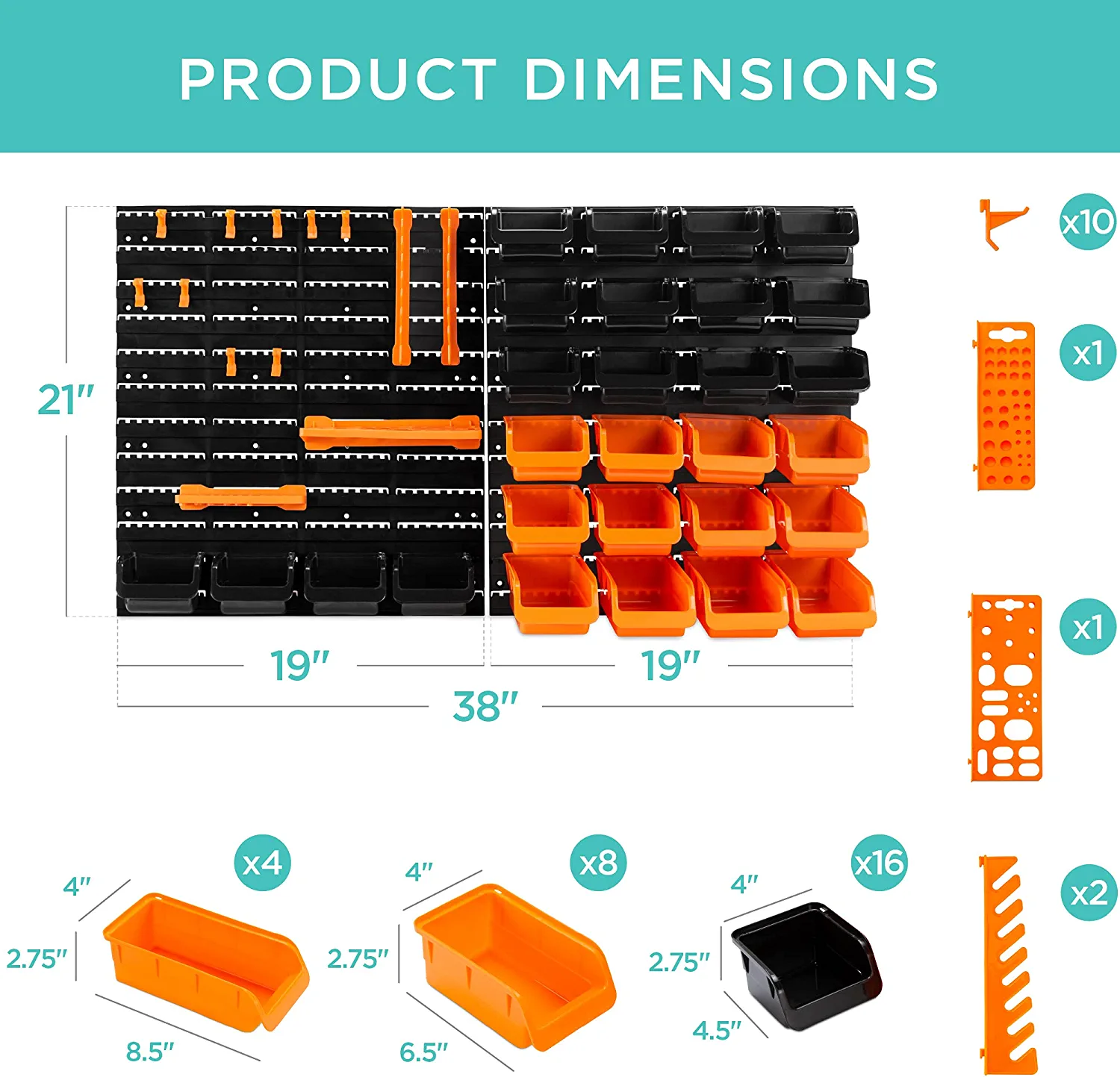 Best Choice Products 38×21.25in 44-Piece Wall Mounted Garage Storage Rack. Tool Organizer w/ 110lb Capacity