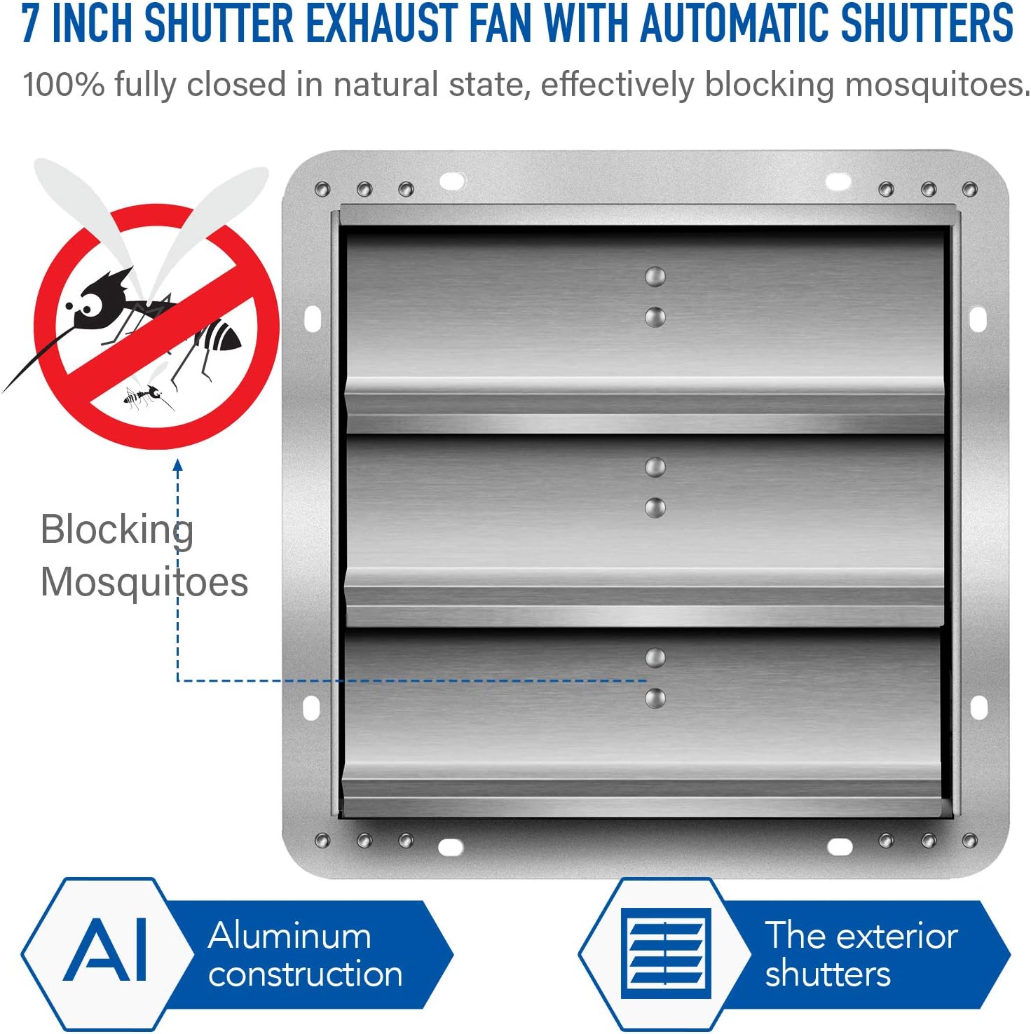 iPower 7 Inch Wall Mount Exhaust Fan with Shutter. High Speed 760 CFM Household Ventilation Fan with Louver for Attic. Garage. Bathroom/Bath. Louvered Vent. Kitchen. Greenhouse