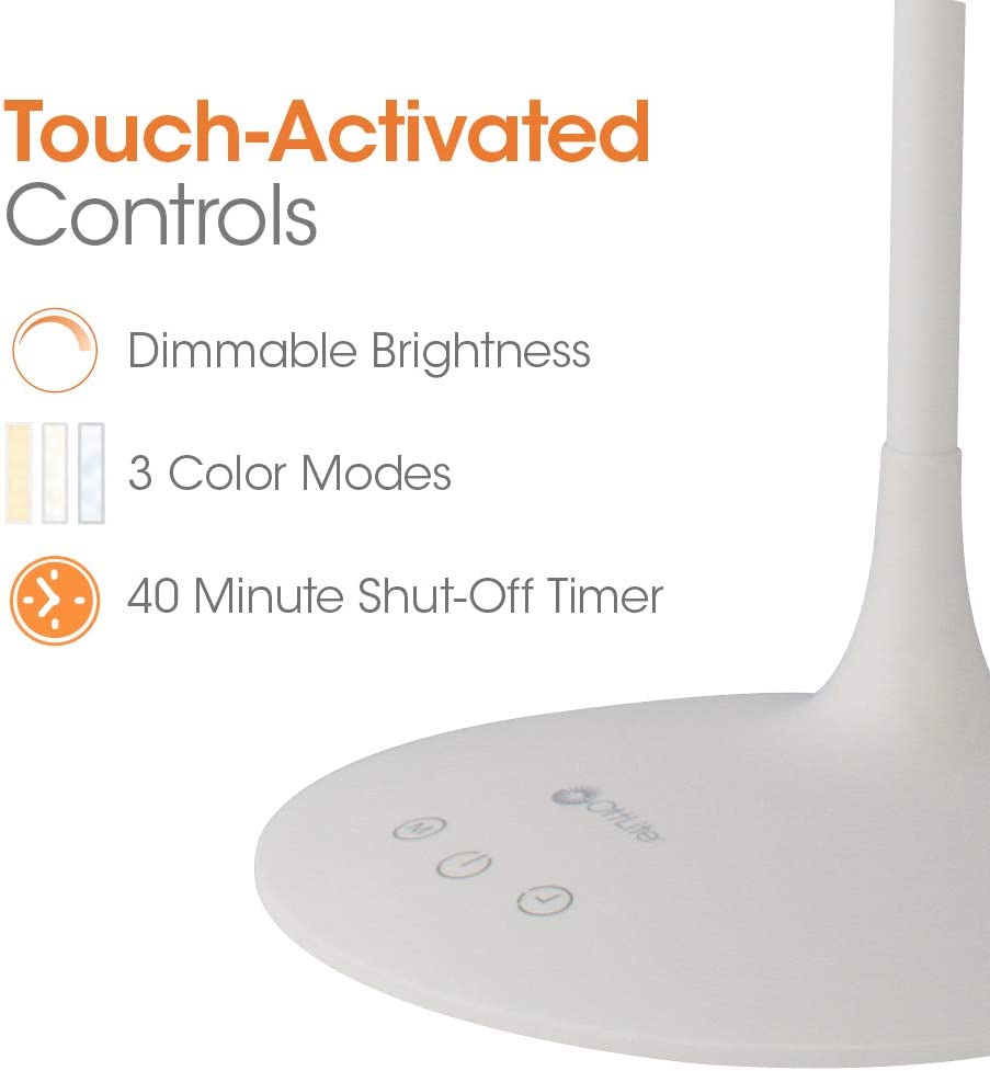 OttLite Desk Lamps 26-in Adjustable White Touch Desk Lamp with Plastic Shade