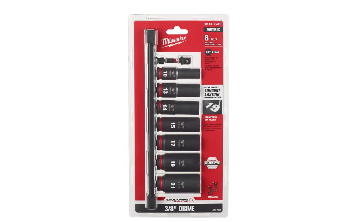 Milwaukee 49-66-7021 SHOCKWAVE Impact Duty 3/8 in. Metric Deep Impact Rated Socket Set (8-Piece)