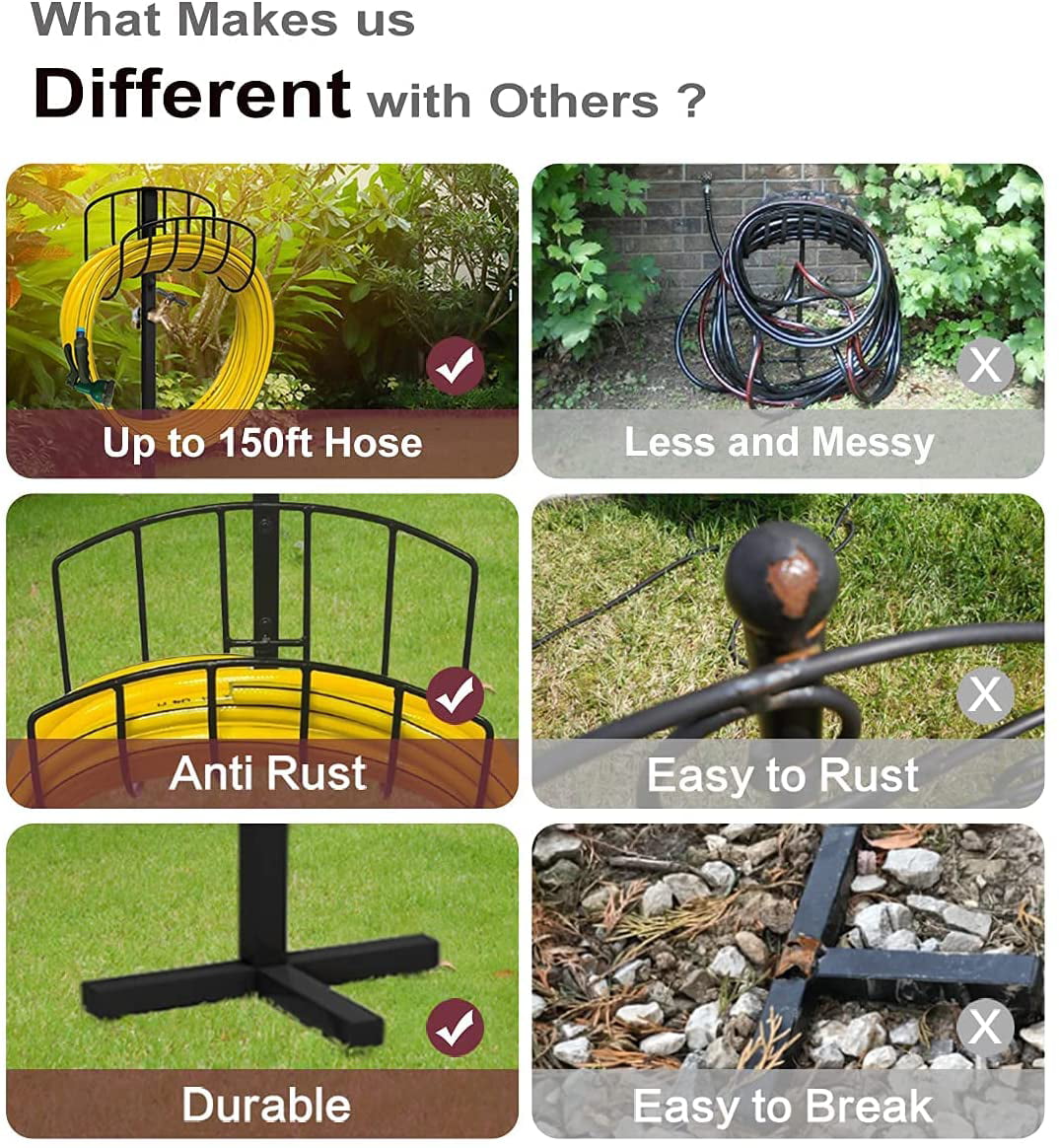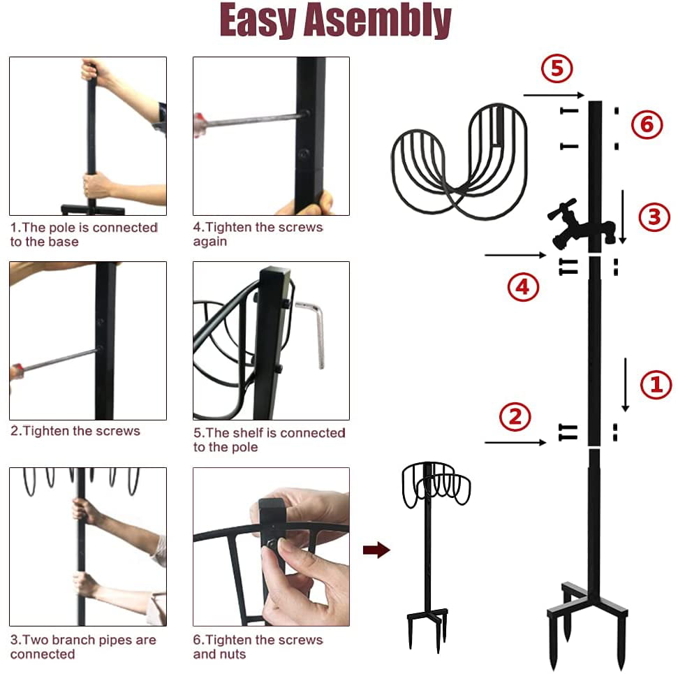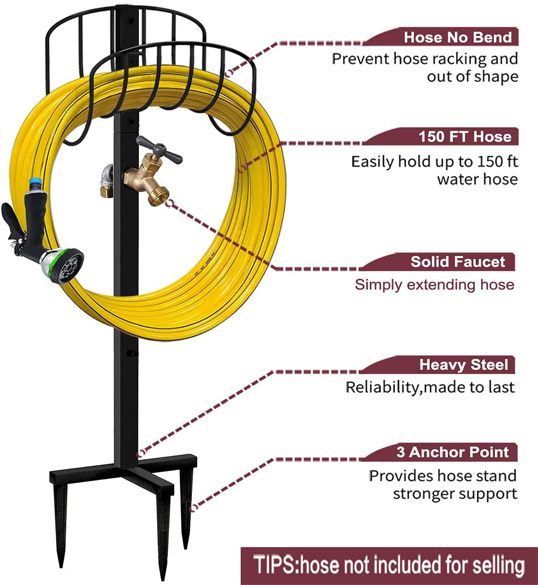 Artigarden Freestanding Garden Hose Holder Stake with Brass Faucet. Heavy Duty Metal Water Pipe Storage Stand Rack for Outdoor