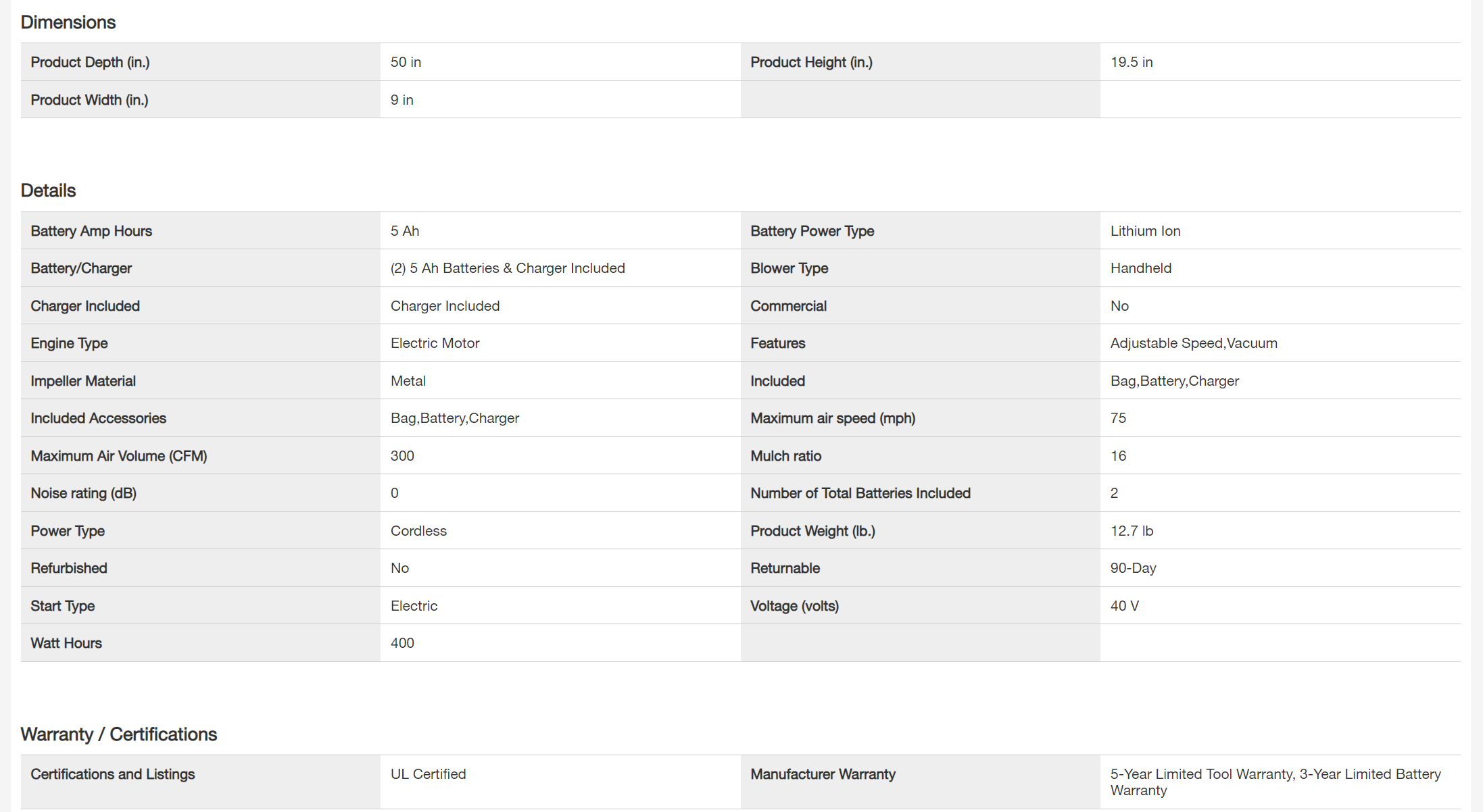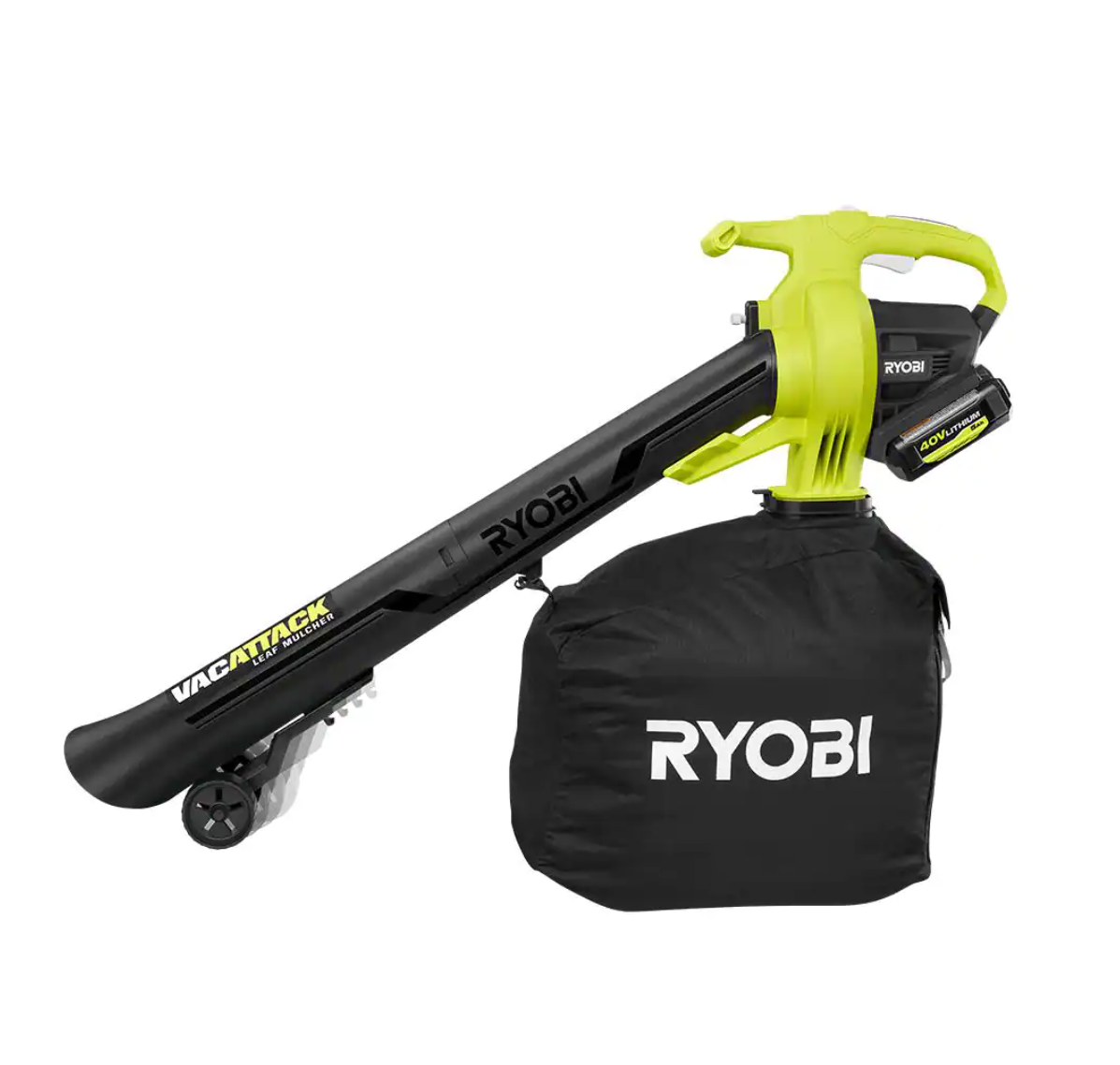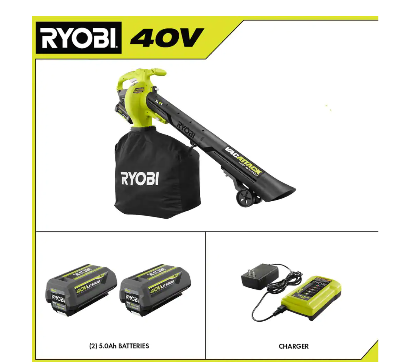 RYOBI RY40451-2B 40V Vac Attack Cordless Leaf Vacuum/Mulcher with (2) 5.0 Ah Batteries and (1) Charger