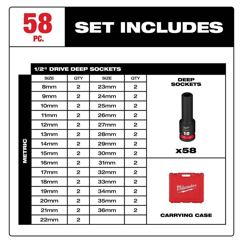 Milwaukee 49-66-7015-49-66-7015 SHOCKWAVE 1/2 in. Drive Metric 6 Point Impact Socket Set (58-Piece)