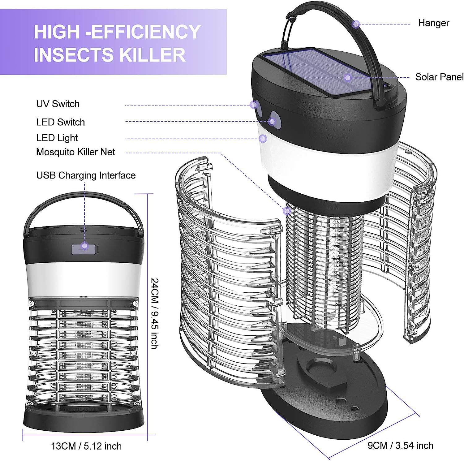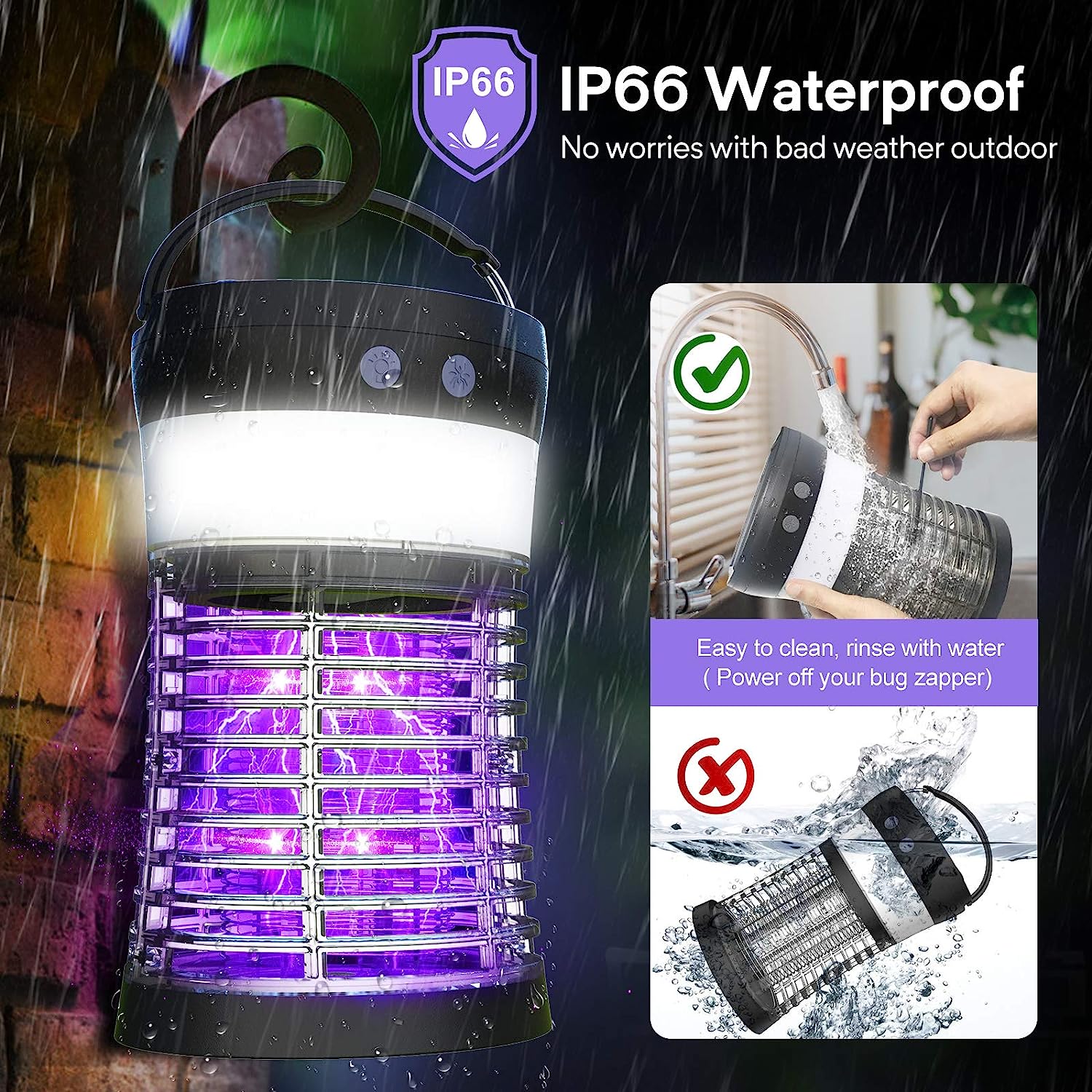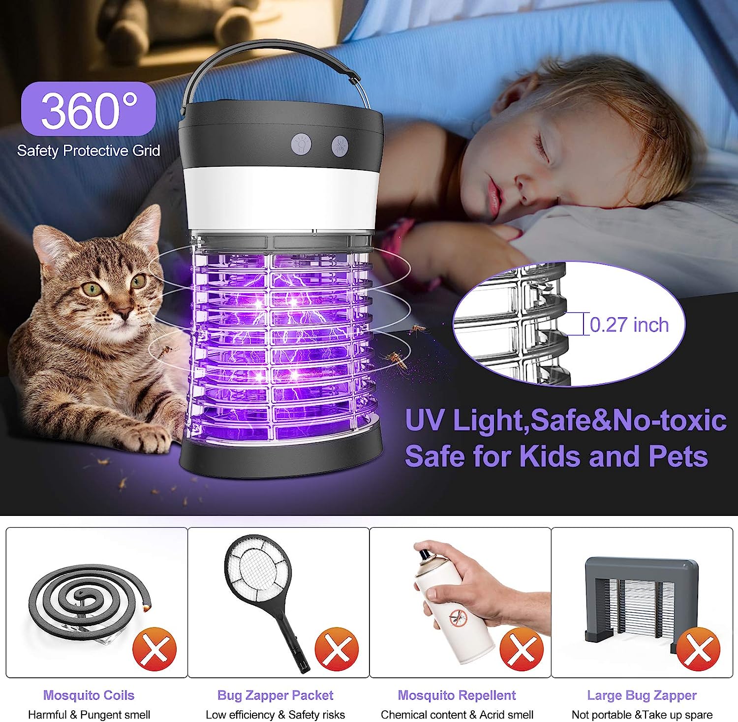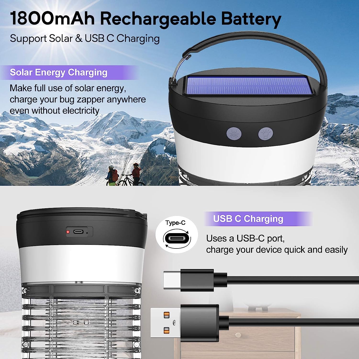 Elechome Bug Zapper. Solar Mosquito Zapper for Indoor & Outdoor. Rechargeable Electric Insect Fly Trap for Home.Kitchen.Patio. Backyard.Camping (3000 Volt)