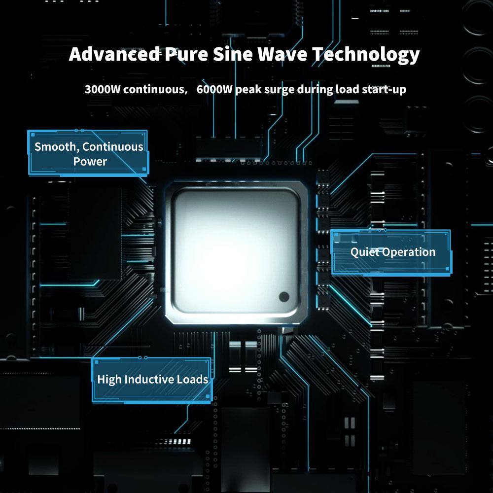 Renogy RNG-INVT-3000-12V-P2 3000-Watt Pure Sine Wave Inverter 12V DC to 120V AC Converter for Off-Grid Solar Power w/ Built-in 5V/2.1A USB Port