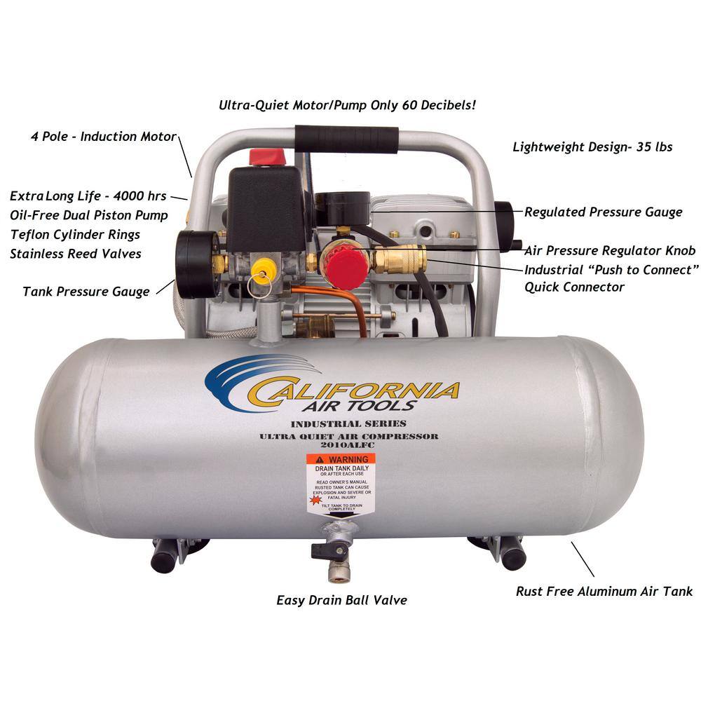 California Air Tools 2010ALFC Industrial 2-Gal. 1 HP Ultra Quiet Oil-Free and Lightweight Electric Air Compressor