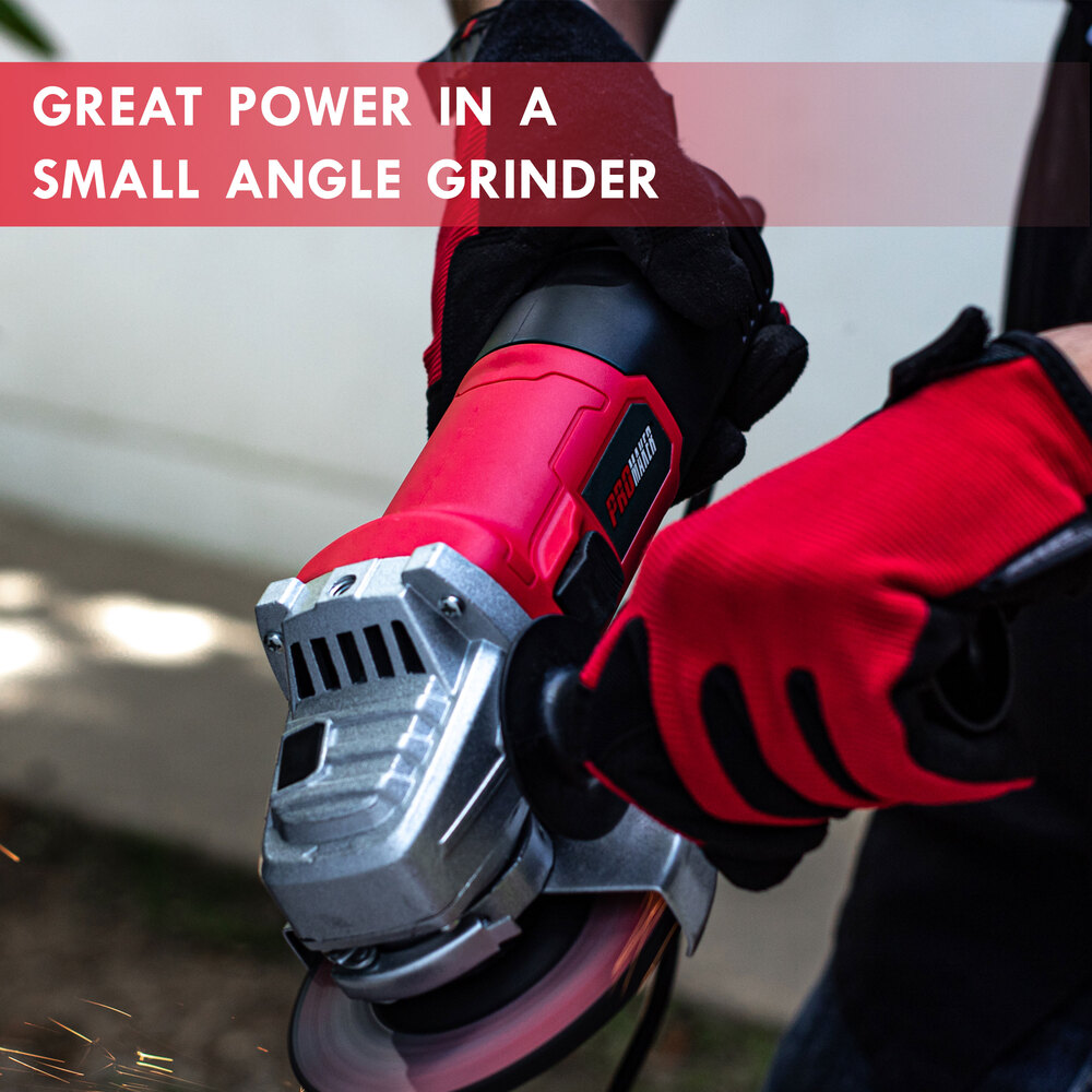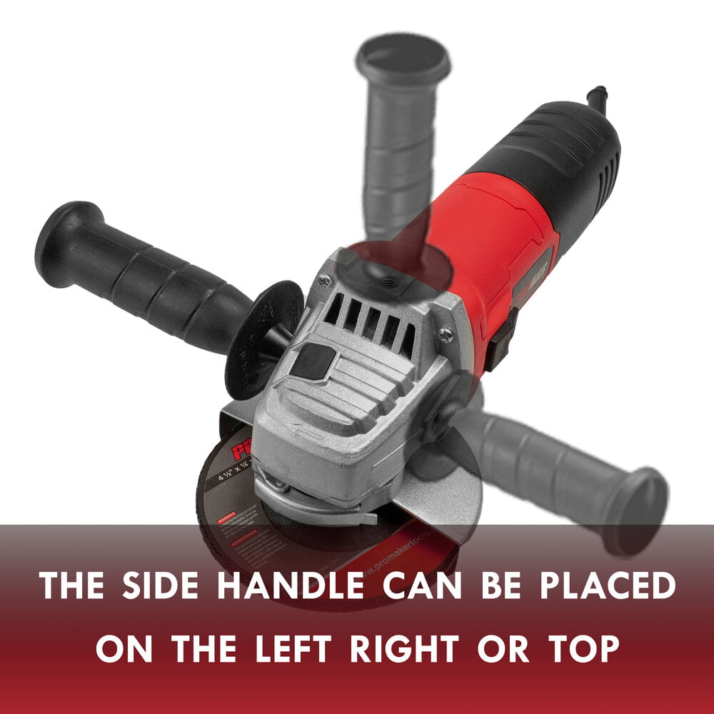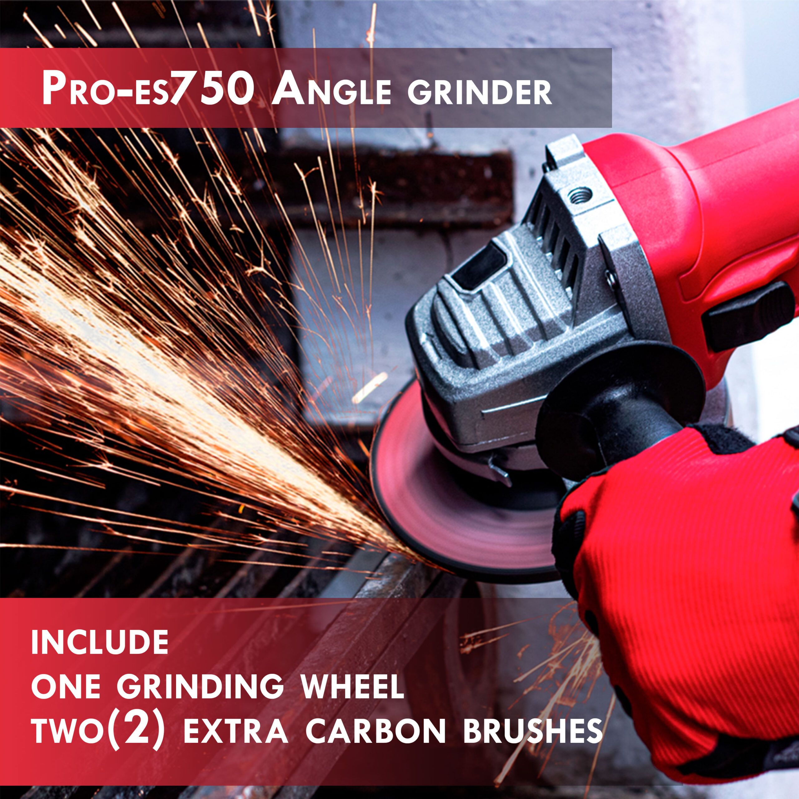 Promaker Power Angle Grinder 4-1/2 inch with one grinding wheels and two (2) extra carbon brushes (115mm) 6.5-Amp 750W. PRO-ES750.