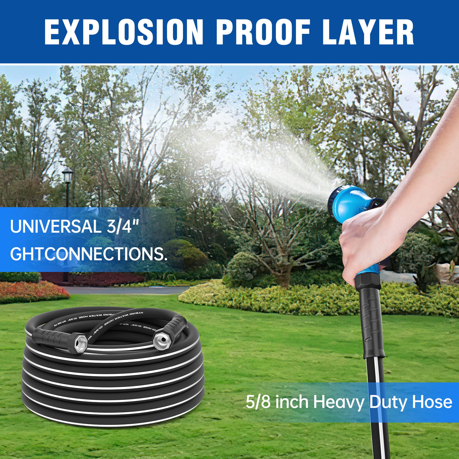 Gardguard Garden Hose 50ft x 5/8″ Heavy Duty. Lightweight Not for Drinking Water. Include Nozzle. Black & Blue