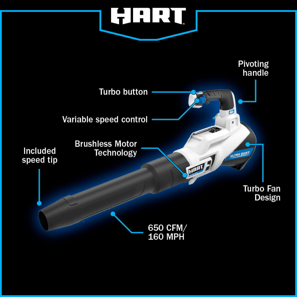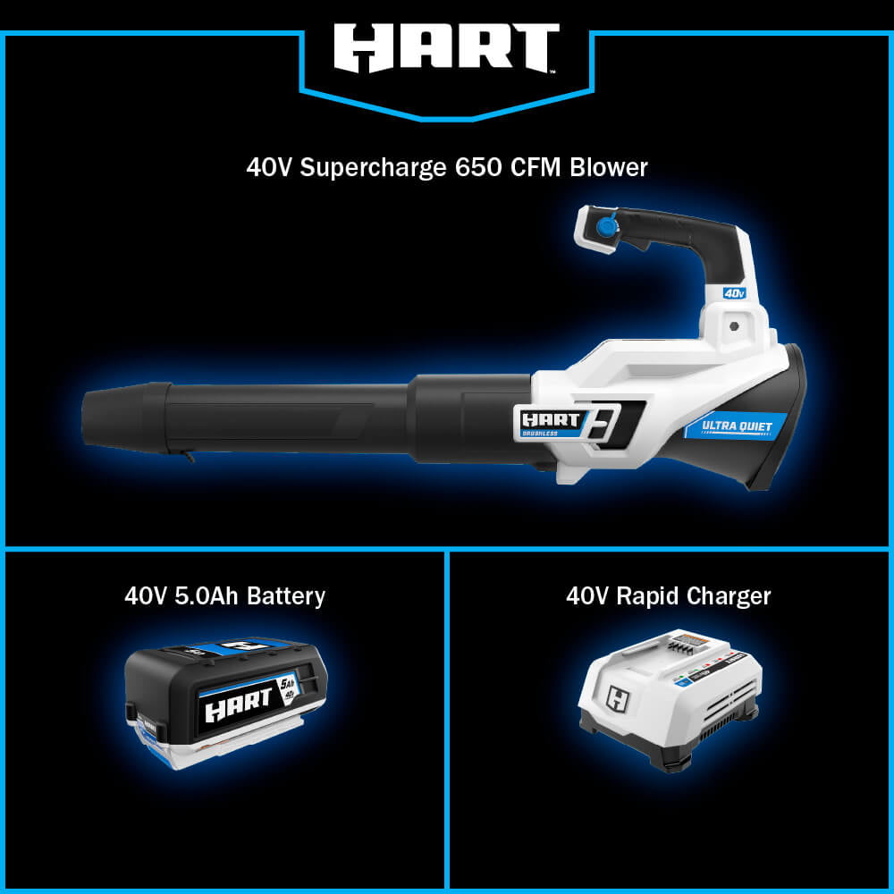 HART 40-Volt Cordless SUPERCHARGE Brushless 650 CFM Blower (1) 5.0 Ah Lithium Ion Battery