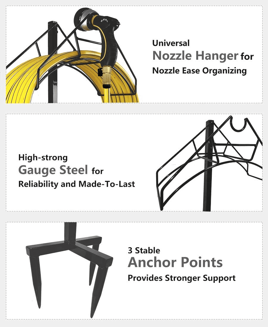 Artigarden Freestanding Garden Hose Holder Hanger. Heavy Duty Metal Water Hose Storage Stand Rack for Yard Lawn. Bright Black (Hose not Included)