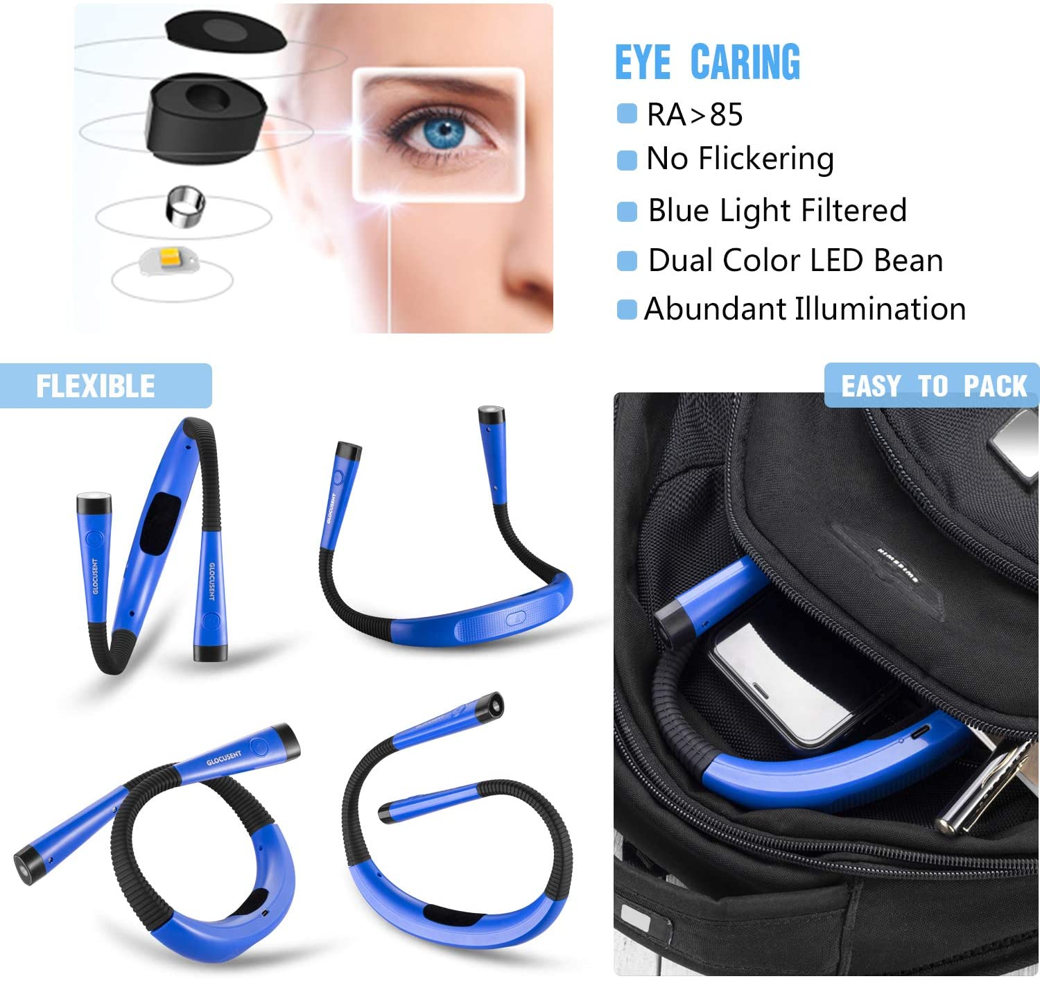 Glocusent LED Neck Reading Light. Book Light for Reading in Bed. 6 Brightness