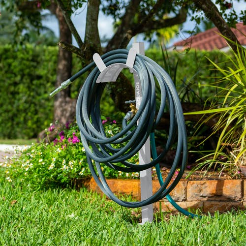 Aqua Joe SJ-SHSBB-WHT Garden Hose Stand with Brass Faucet (White)