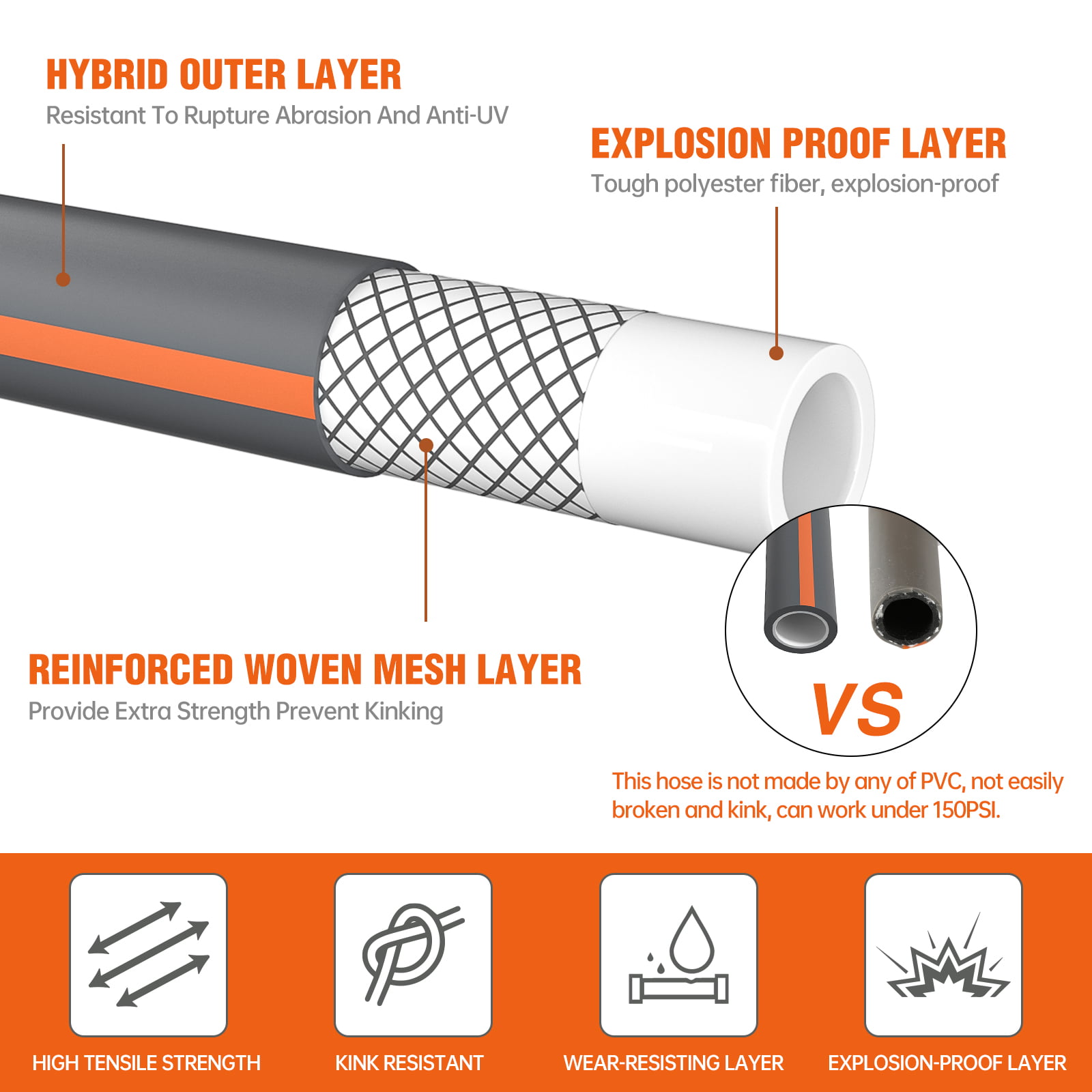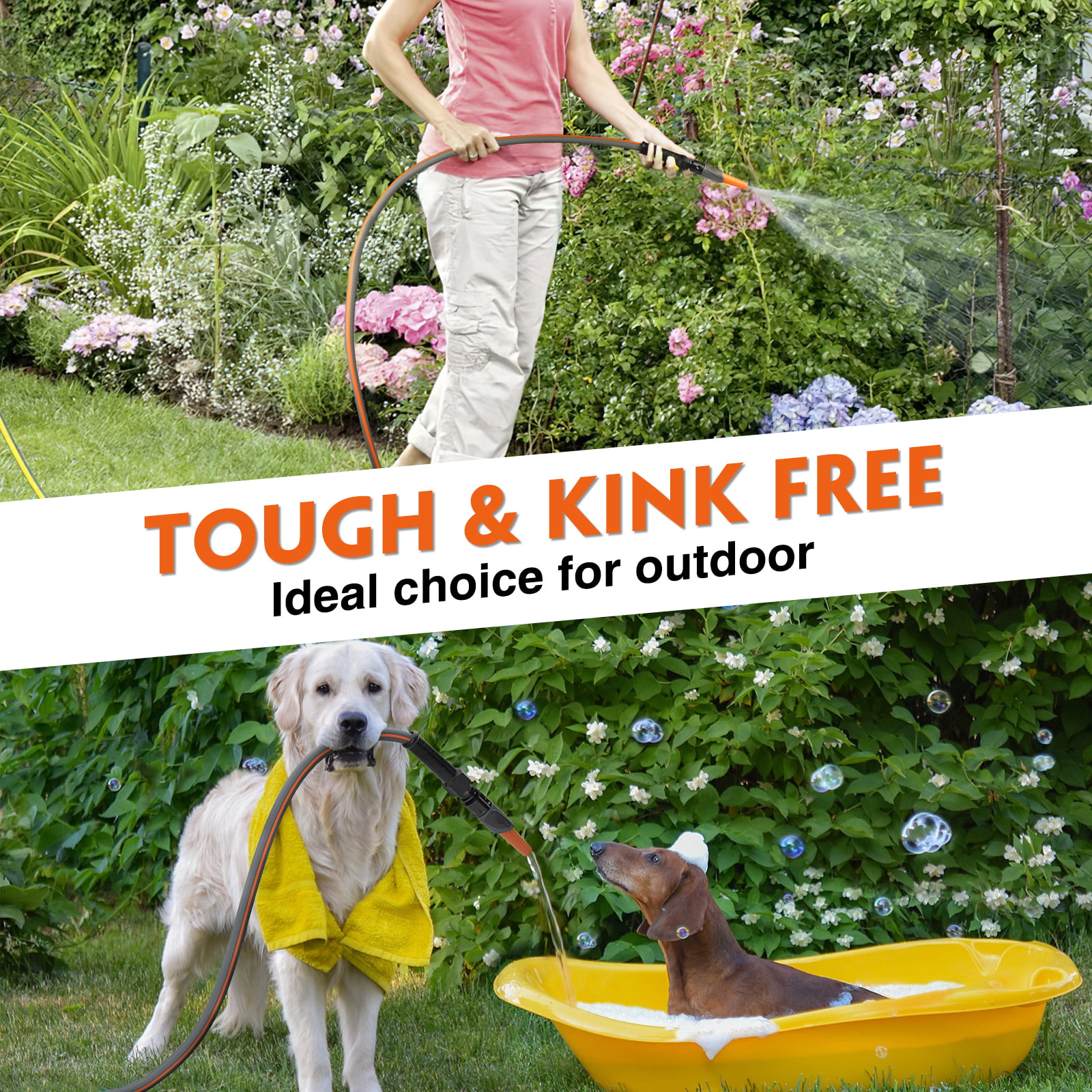 Gardguard Garden Hose 25ft x 5/8″ Heavy Duty. Lightweight Not for Drinking Water. Include Nozzle. Black & Red