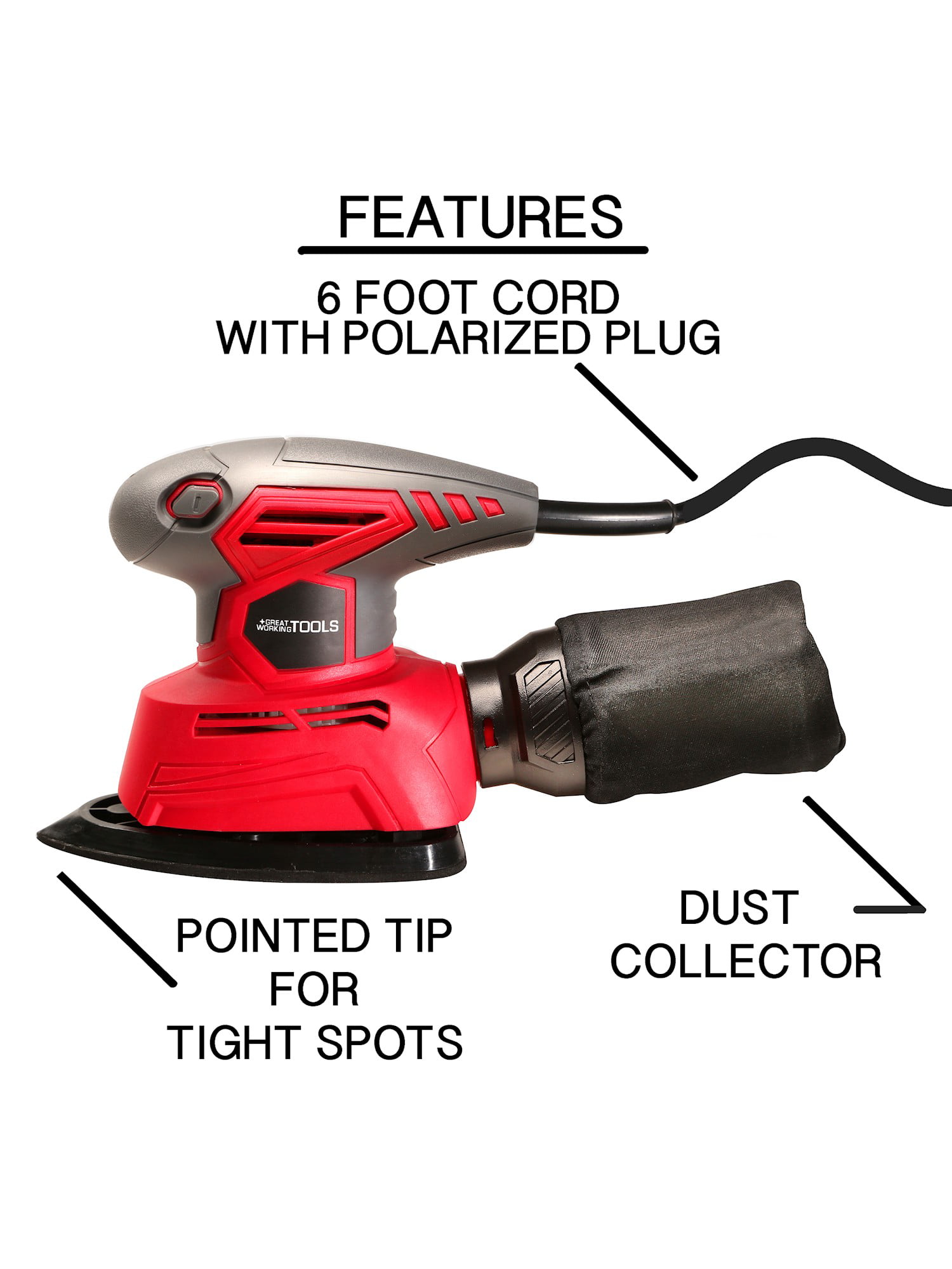Great Working Tools Mouse Sander. Detail Orbital Palm Sander with Dust Collection Bag & 27 pcs Sandpaper. 1.1 Amp 14.000 OPM