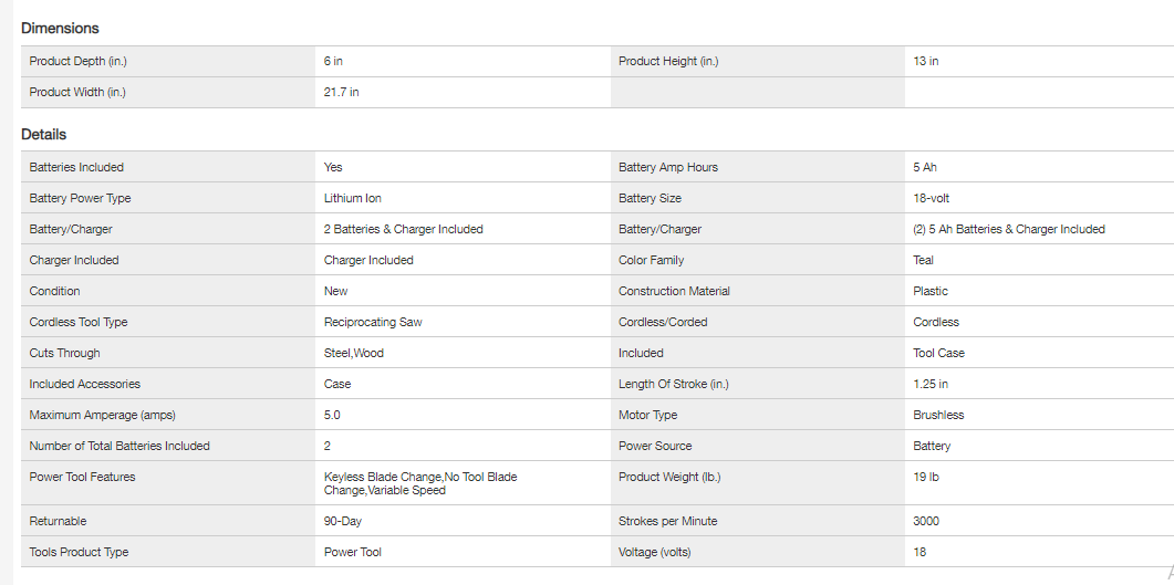 Makita XRJ05T 18-Volt 5.0Ah LXT Lithium-Ion Brushless Cordless Recipro Saw Kit
