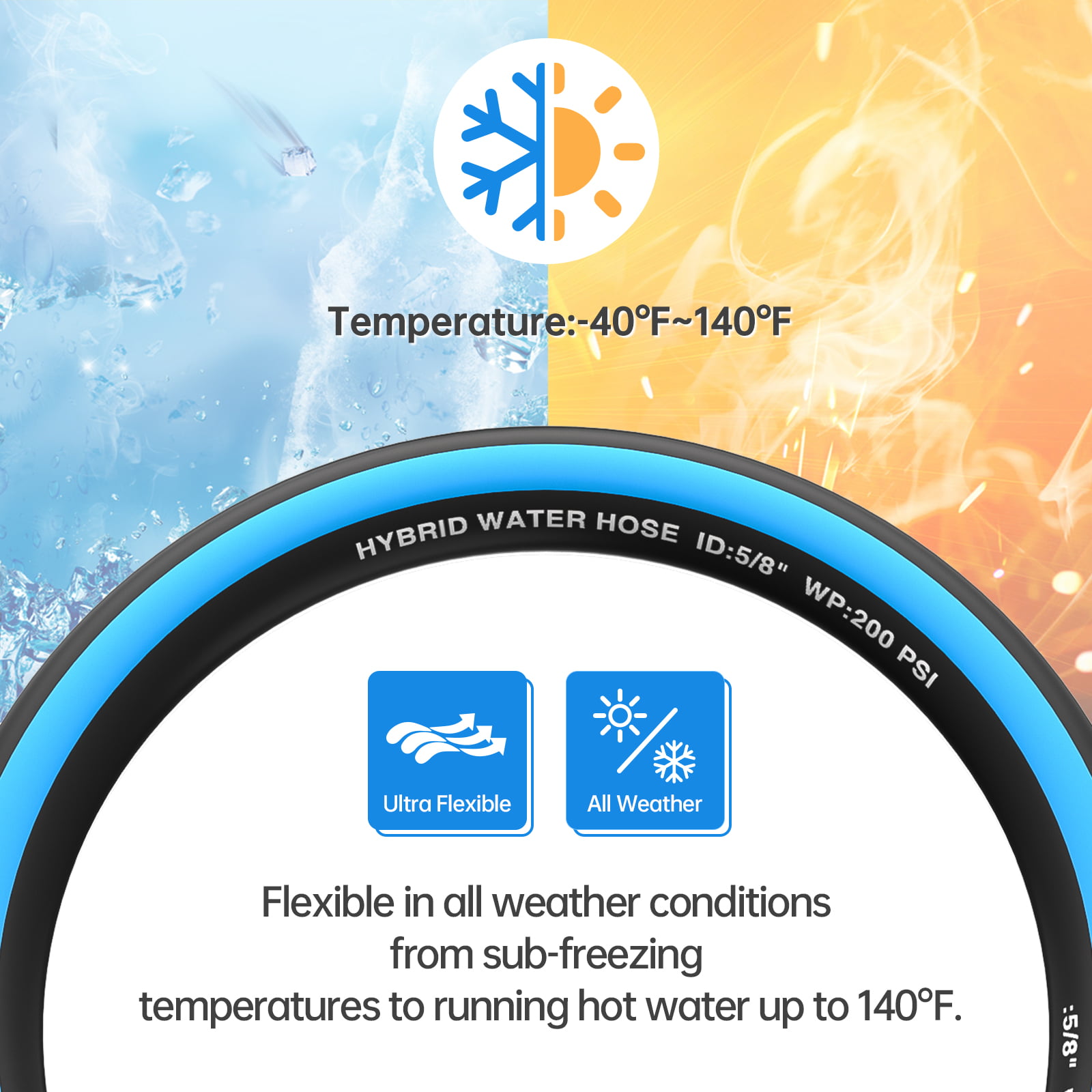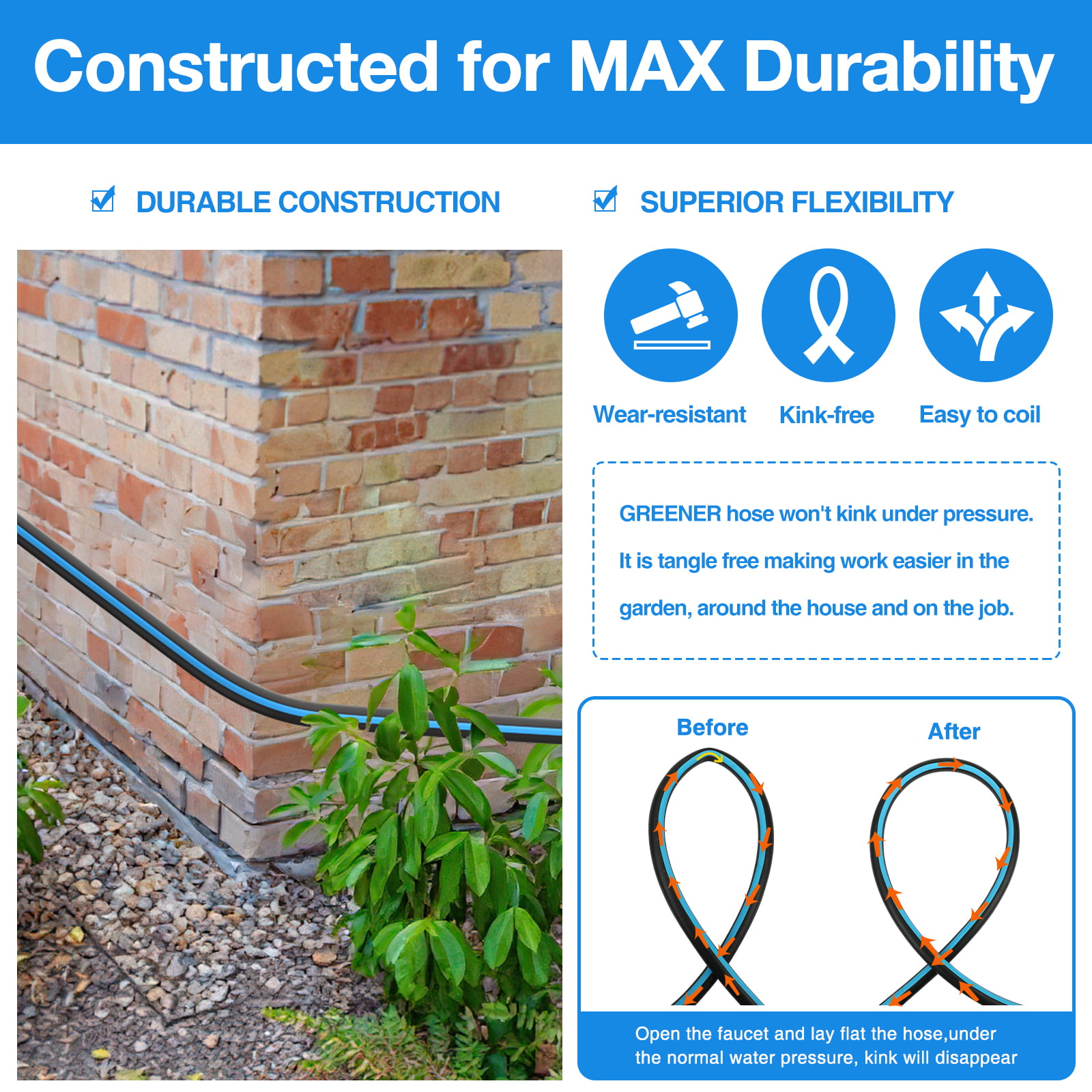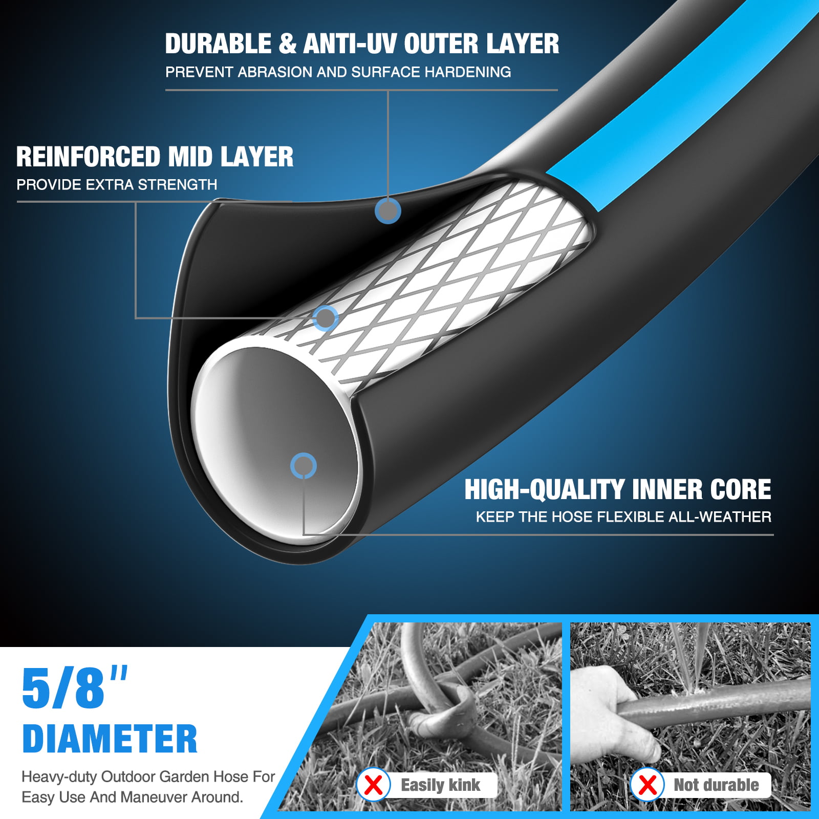 Gardguard Garden Hose 25ft x 5/8″ Heavy Duty. Lightweight Not for Drinking Water. Include Nozzle. Black & Blue