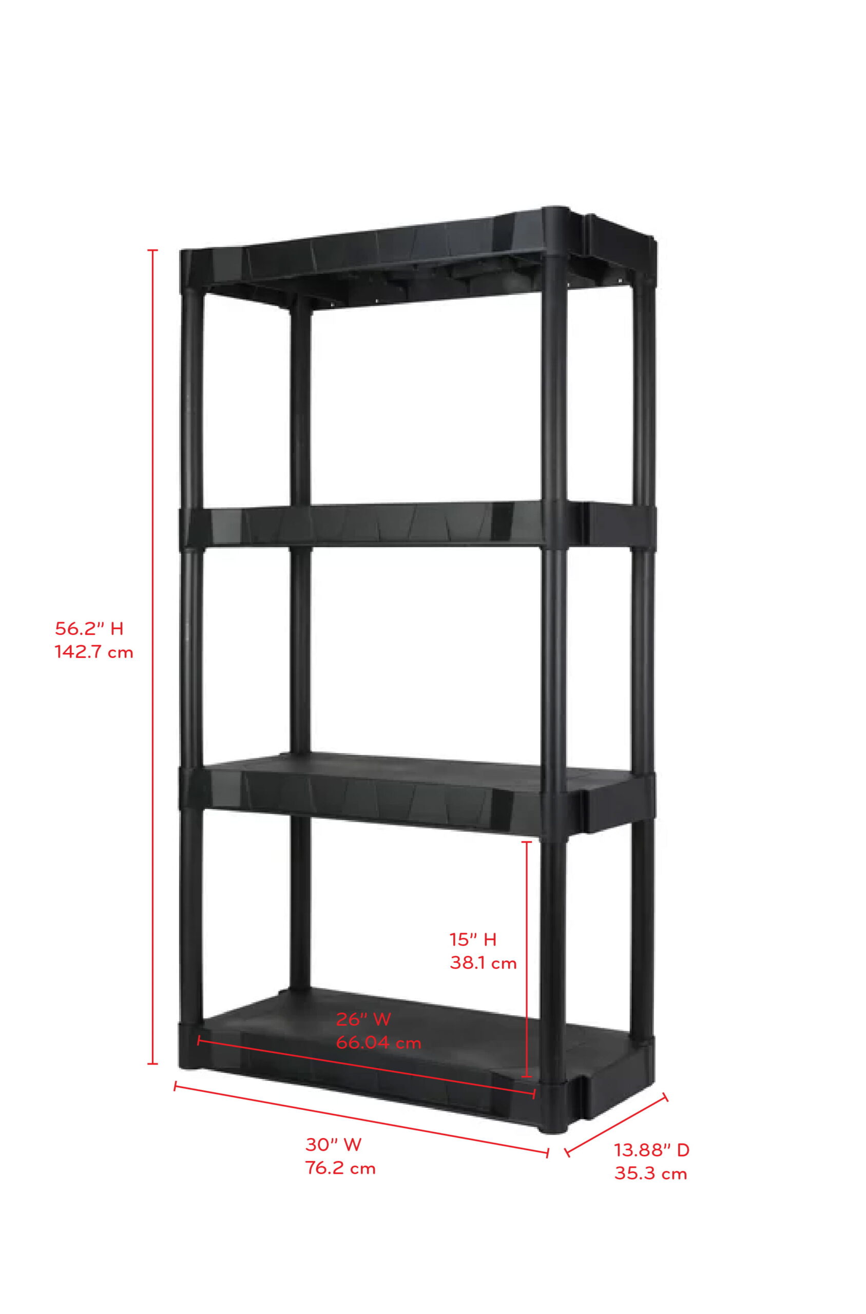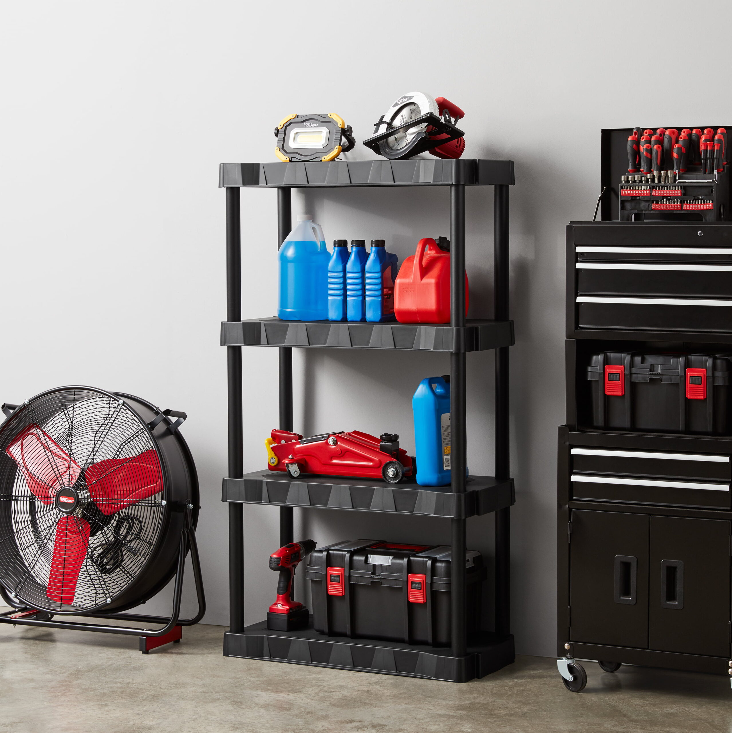 Hyper Tough 13.88″D x 30″W x 56.2″H 4 Shelf Plastic Garage Shelves. Black