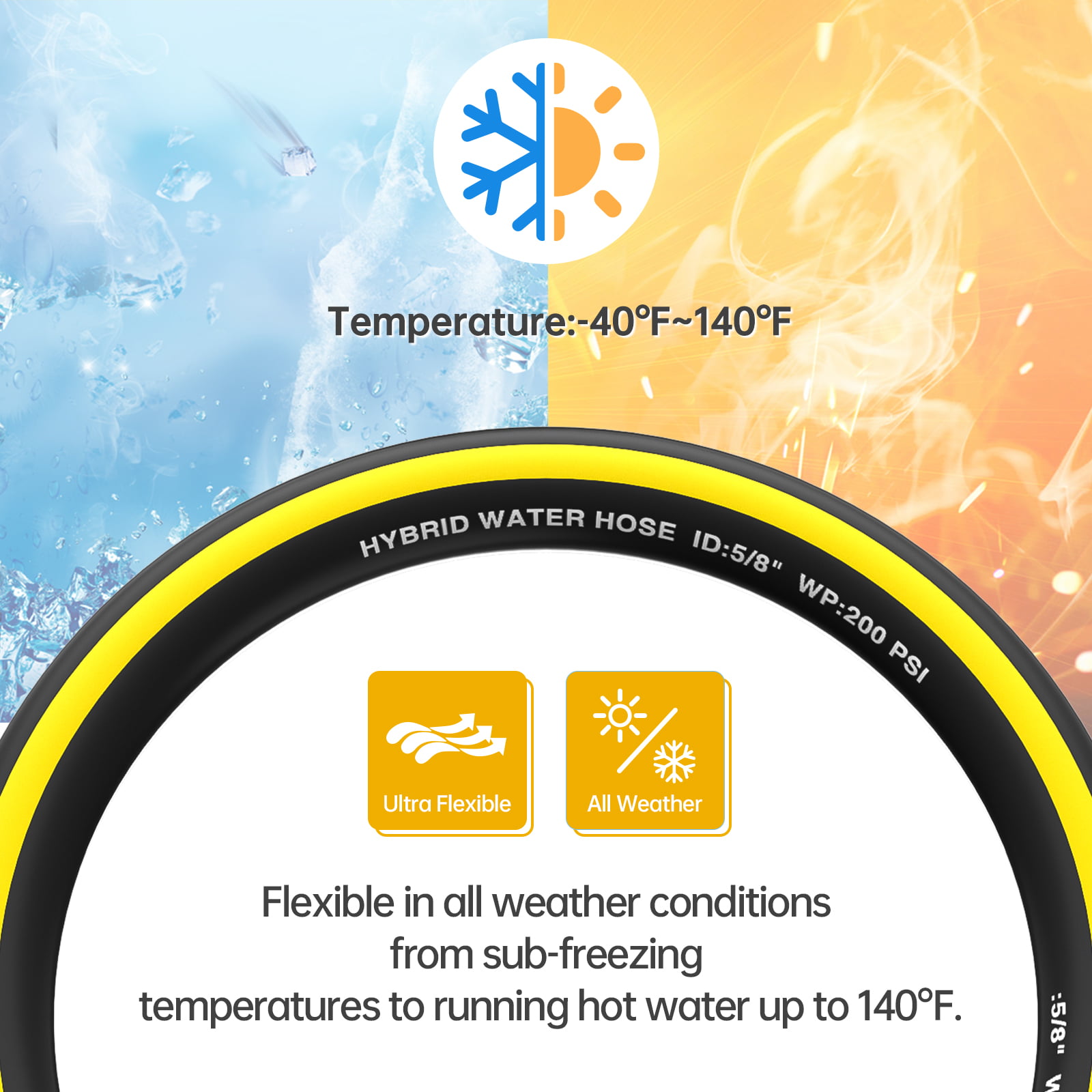 Gardguard Garden Hose 25ft x 5/8″ Heavy Duty. Lightweight Not for Drinking Water. Include Nozzle. Black & Yellow