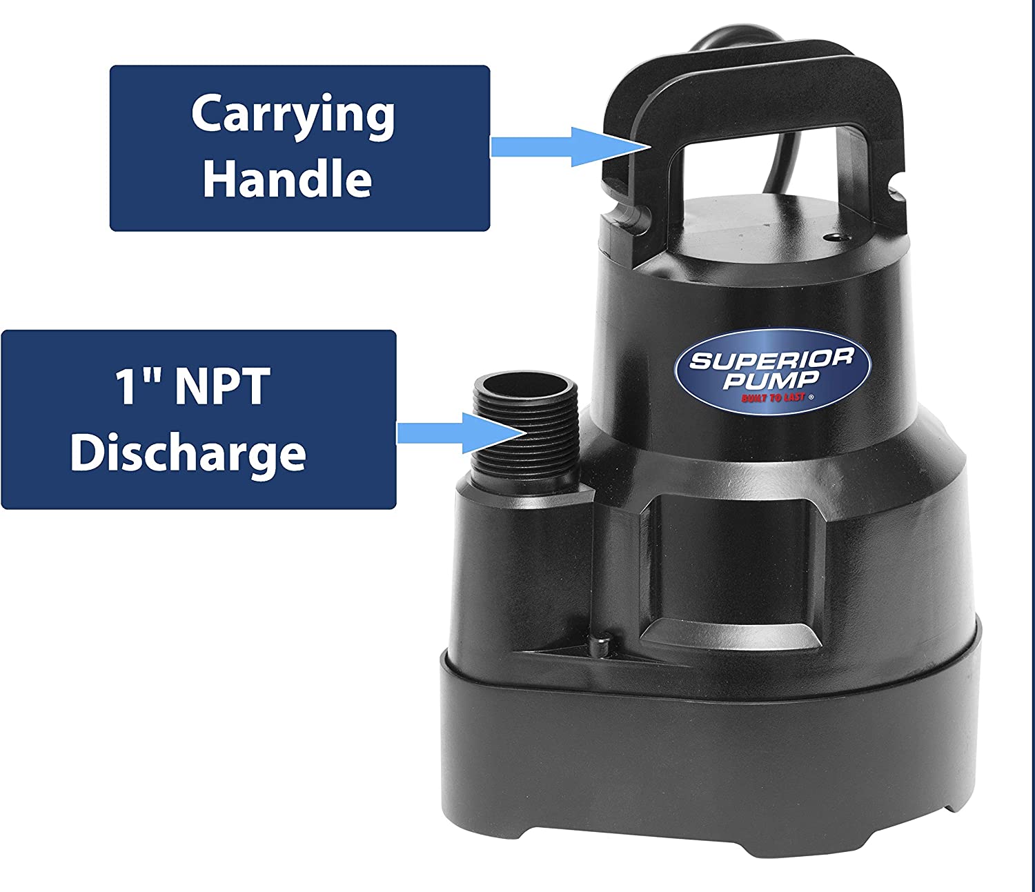 Superior Pump 91014 1/4 HP High Flow Thermoplastic Utility Pump. Black