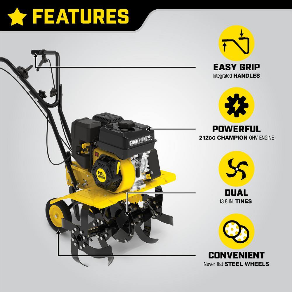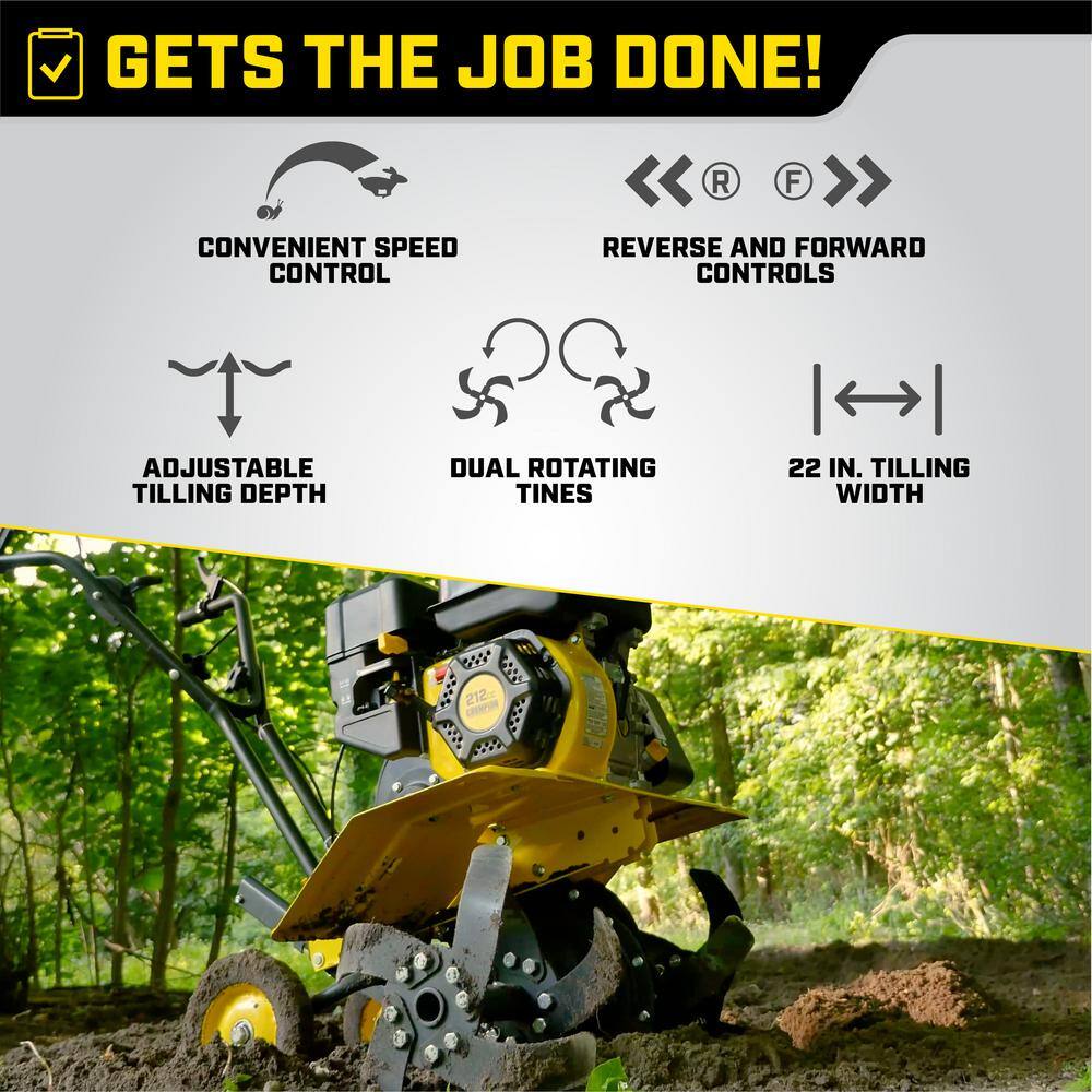 Champion Power Equipment 100379 22 in. 212cc 4-Stroke Gas Garden Front Tine Tiller with Forward and Reverse